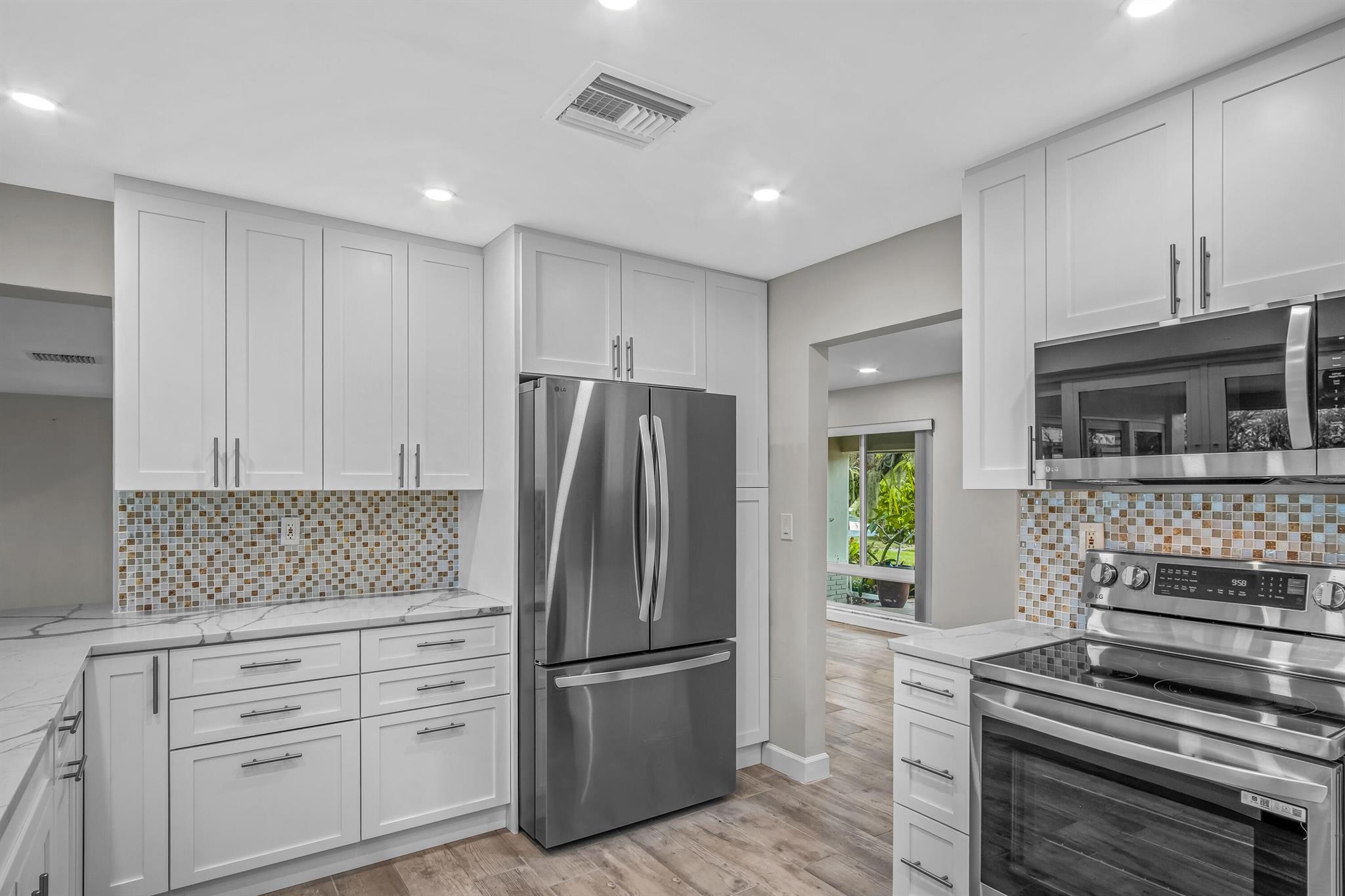 Newly renovated in Royal Oak Hills neighborhood. New kitchen with a lot of storage space, formal dining area, designated breakfast area, windows throughout the whole kitchen letting in lots of light! New flooring and bathrooms. Wide open floor plan connects the open family room to the Florida room with plantation shutters. Great inside/outside flow allowing for fantastic entertaining. Bonus room off the 2 car garage could be used as a small office or additional storage. This area is the heart of Boca Raton; zoned for one of the best schools in the area, safe and charming neighborhood with ambiance. Mere minutes to Downtown, Mizner Park, Sugar Sand Park (fantastic for kids), beach (Red Reef Park), multiple grocery stores. Easy access to I-95. This is the neighborhood you want to live in!