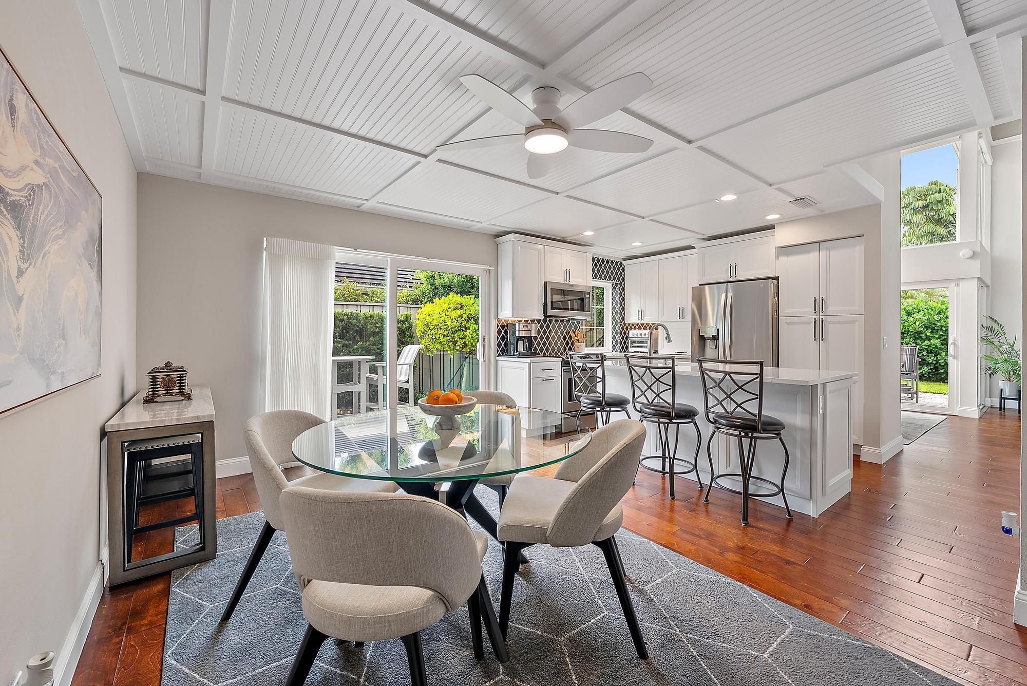 Beautifully updated and meticulously maintained 3 bedrooms, 2.5 bath, 2 car garage home located in the quite enclave of Bristol Club inside PGA National. Vaulted ceilings & remote-controlled solar shades on the upper windows. Newly renovated kitchen and powder bath. Wood flooring throughout the downstairs, stairs & upstairs hallway, and new designer carpeting in the bedrooms. Turnkey and fully furnished with high end newer furniture include king bed in primary bedroom, queen bed in 2nd bedroom, and queen sleeper sofa in 3rd bedroom that can be switched out to queen bed. Impact glass windows and doors throughout. 2023 a/c with UV lighting. Upgraded landscaping, fenced yard. Phantom screens & retractable awning in extended patio. Garage has a wall-mounted a/c, EV outlet and epoxy flooring.