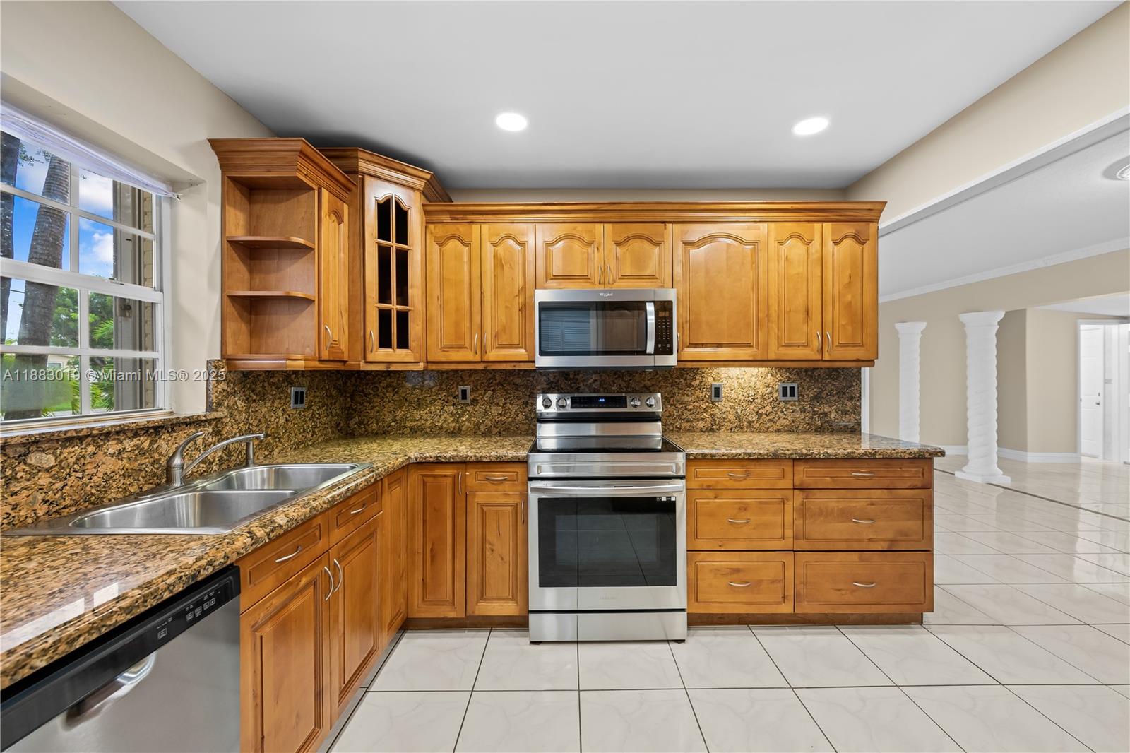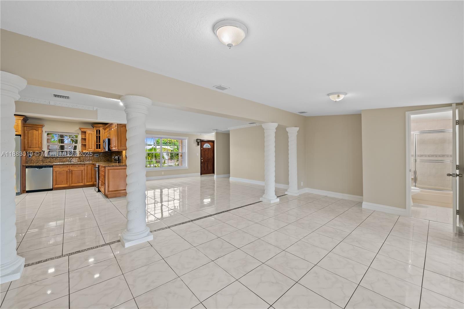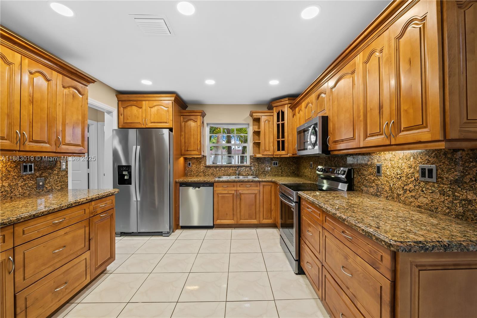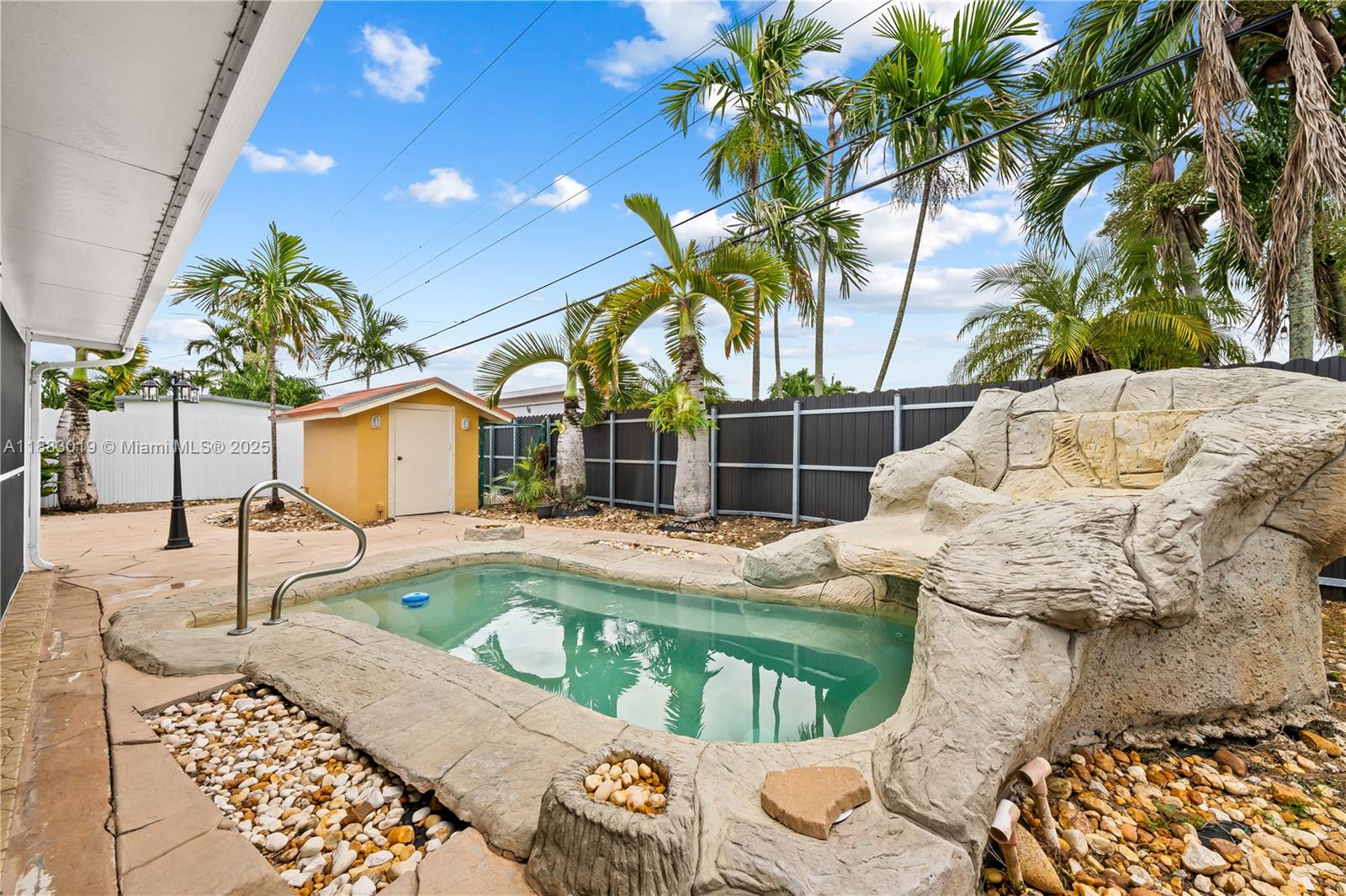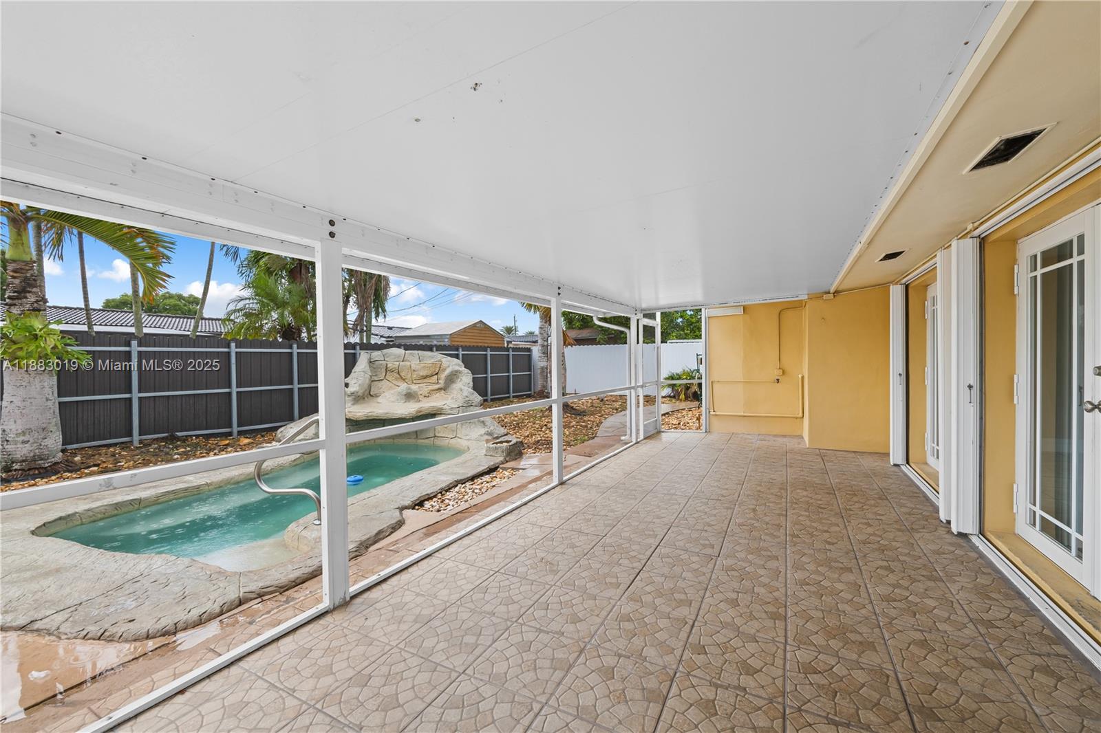 Located just outside of Miami Lakes and minutes from the Palmetto Expressway, this 1-story home features 5 bedrooms (triple-split floor plan), 3 full bathrooms, updated kitchen with granite countertops & stainless steel appliances, laundry room, screened patio with solid roof, and a splash pool/jacuzzi with waterfall.  Additional features include an outdoor storage building, fully 6ft privacy-fenced back yard, 2 driveways & side-yard slab for additional parking and accordian shutters throughout.  2 dogs allowed <30lbs and under (no aggressive breeds). Requirements include first, last and security, good credit, income 2x's rent, credit and background check, and renter's insurance.  Lawn & Pool maintenance included.  No subletting allowed. Home SQ FT is larger than noted on tax records.