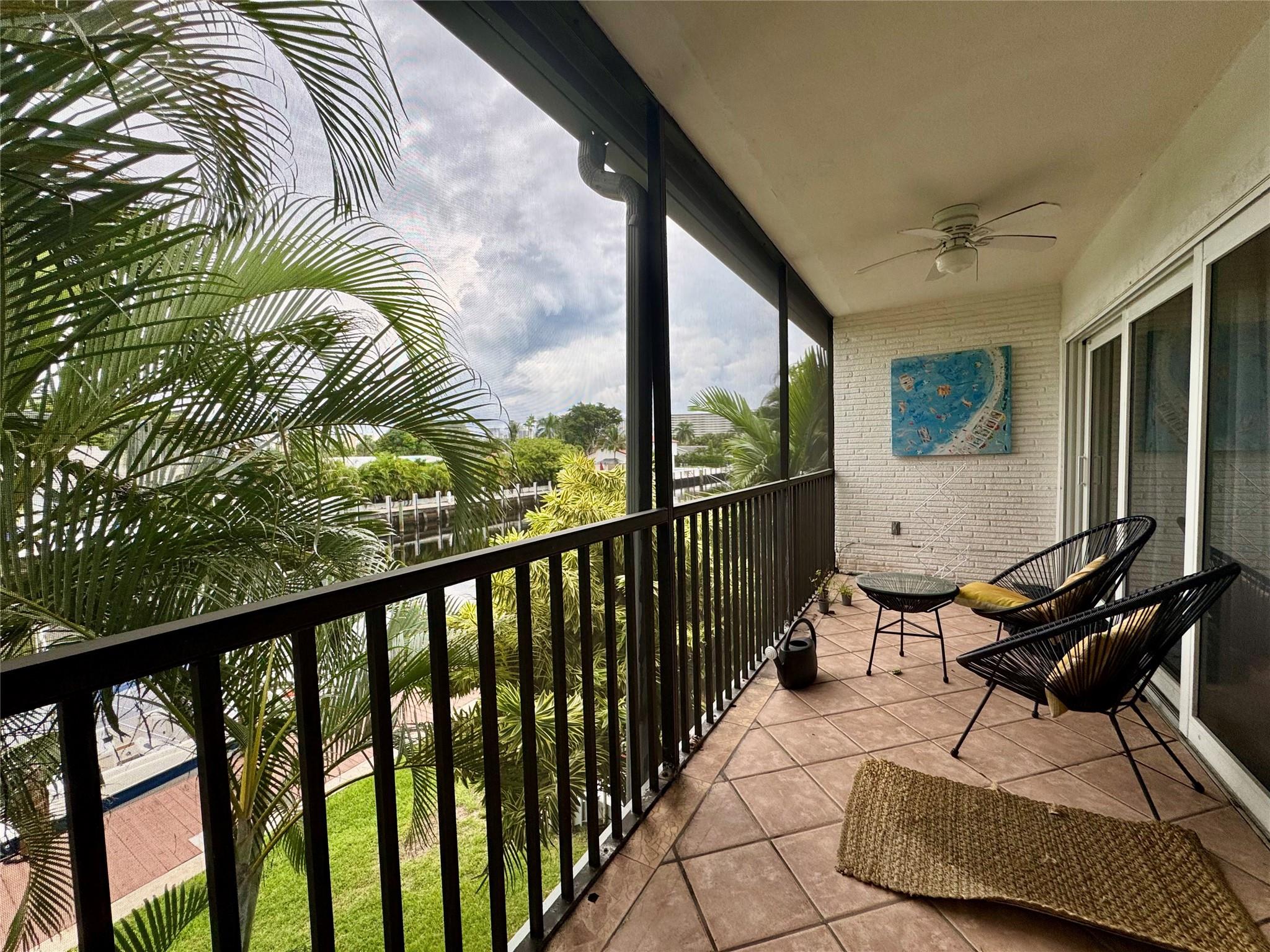 Welcome to Chateau Terese, offering an ocean-access waterfront lifestyle with no fixed bridges, available dockage, and a prime spot just off the Intracoastal. This 1-bed, 1-bath condo includes impact windows/doors, a modern kitchen with granite counters and stainless appliances, tile flooring, and recessed lighting throughout. Relax bug-free on the spacious screened balcony with water views, accessible from both the living room and bedroom. The bathroom boasts updated vanity, tub surround, and toilet. Assigned parking is conveniently located right below your unit. Ideally situated off Oakland Park Blvd and Bayview Dr, you’re just minutes to beaches, shopping, and Fort Lauderdale’s top dining. Pets allowed—up to 2, combined weight max 50 lbs.