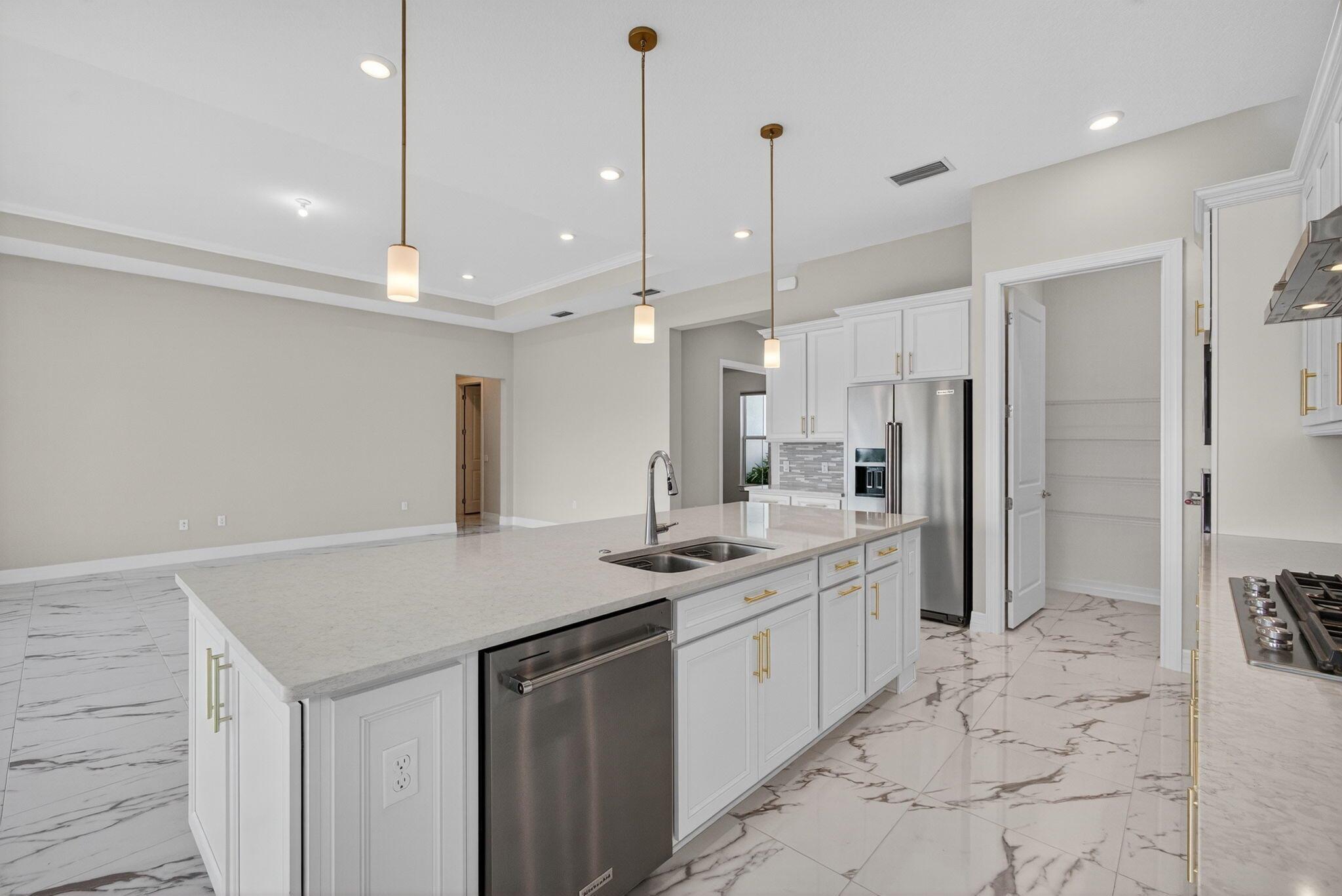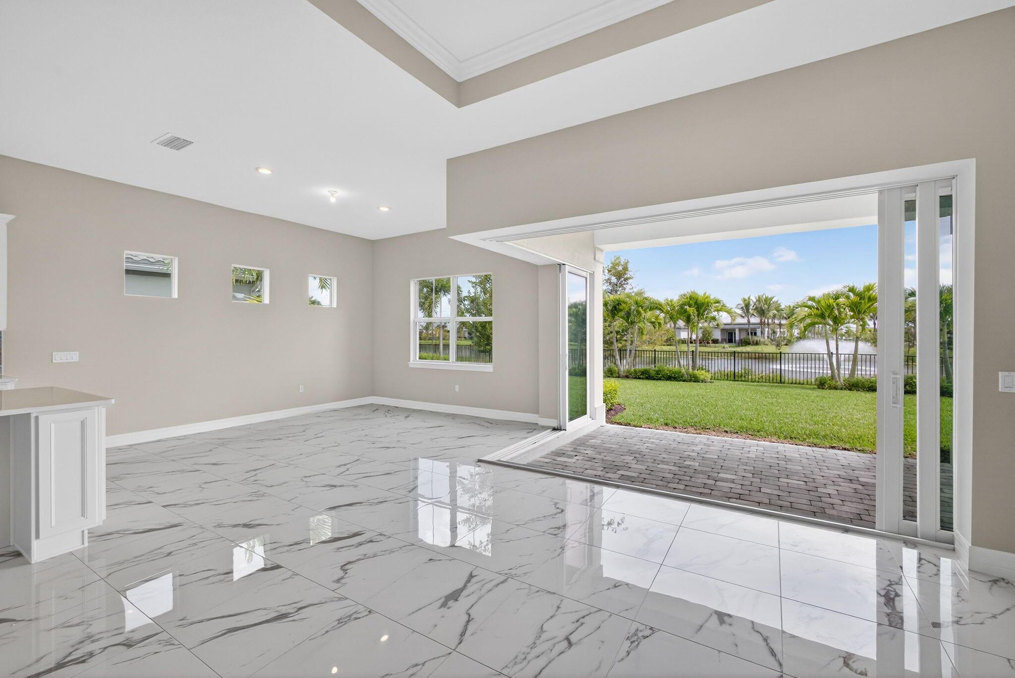 Stunning 3BR/4BA home on an extra-wide 90' premium lot with spectacular water, fountain, park & bridge views! This beautifully upgraded home features a 3-car garage with 4' extension, corner glass rear sliders, and a Coastal elevation. Interior upgrades include a flex/bonus room with double glass French doors, cabana bath, walk-in double shower in the primary suite, and upgraded flooring (porcelain, wood, carpet). Designer kitchen and baths feature upgraded cabinets, countertops, tile, backsplash, hardware & appliances. Additional highlights: upgraded lighting, tankless water heater. Rare opportunity for luxury, space & views in one exceptional property. Avenir offers upscale amenities, incl. pools/spa/waterpark, kids club, fitness center, tennis, pickleball, clubhouse, walking trails.