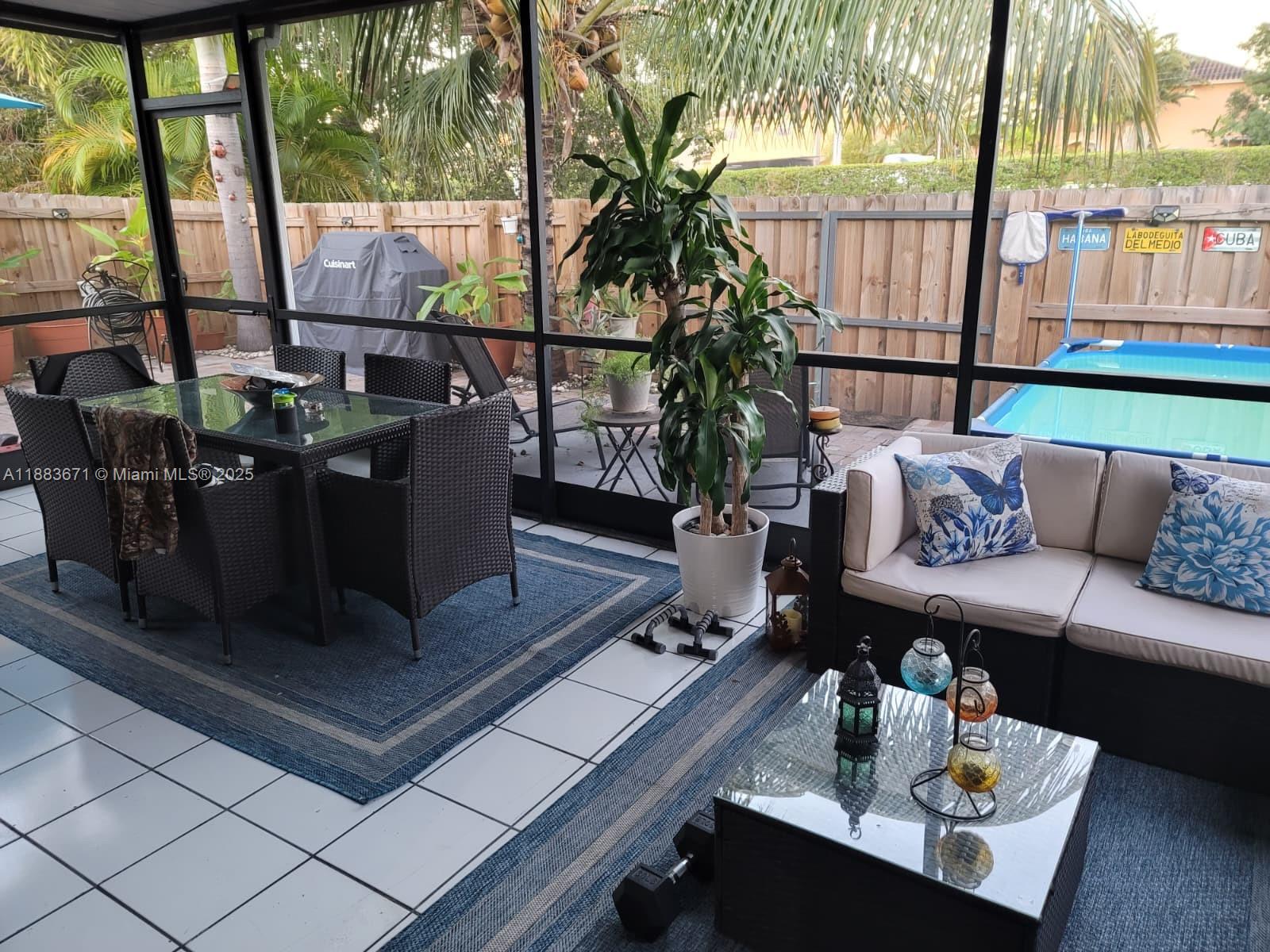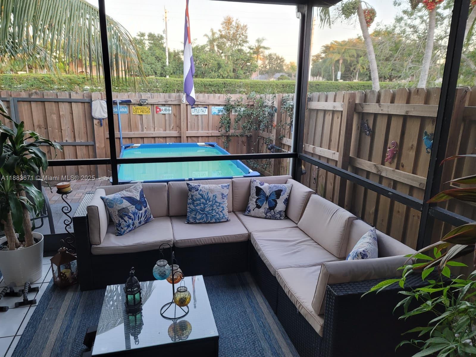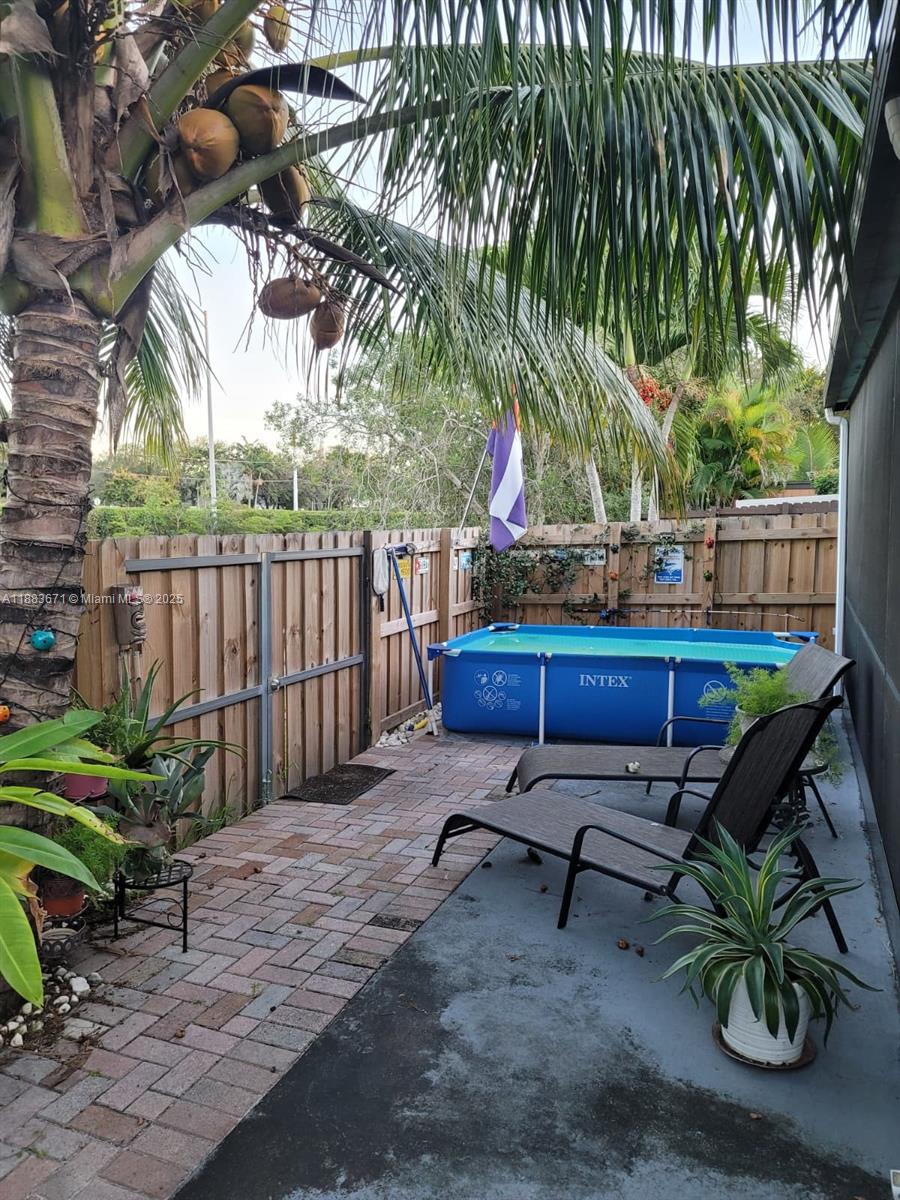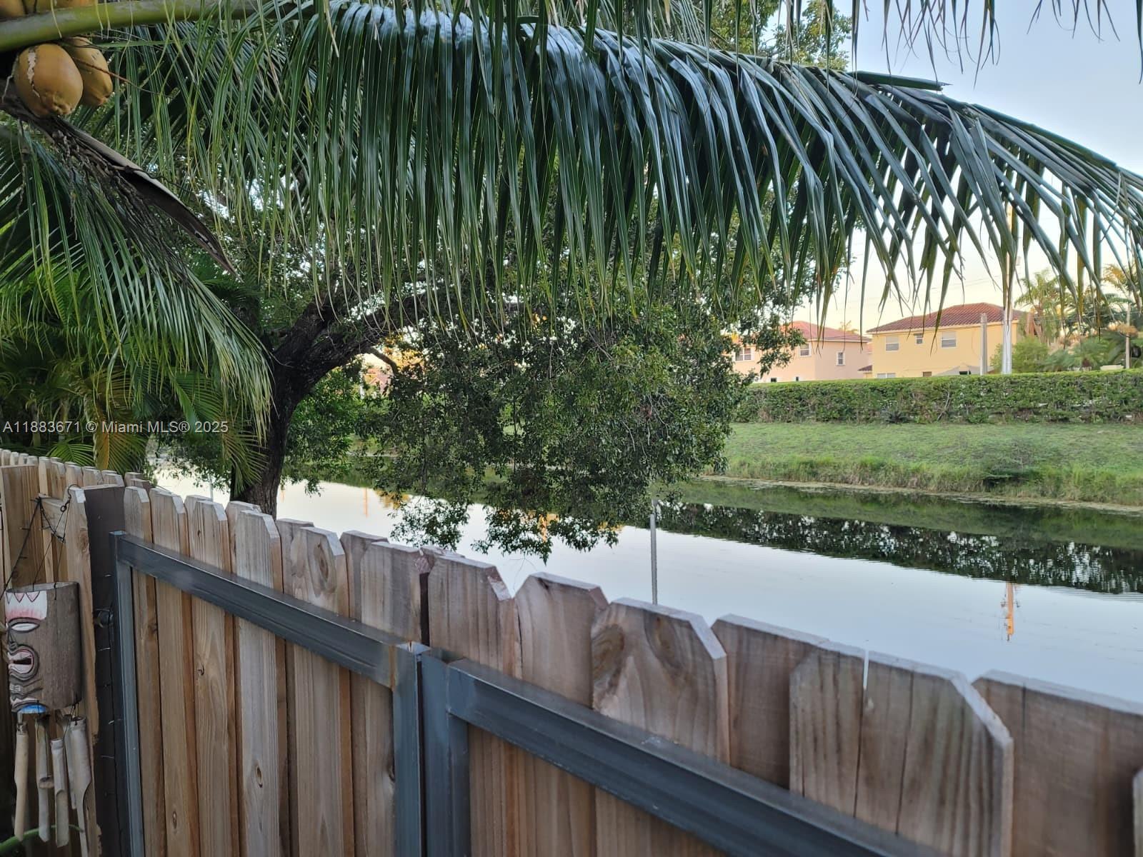 Remodeled corner townhome with new bathrooms, new roof, impact windows, and a recently installed A/C. Kitchen features a water filter system. Offering 2 bedrooms, 2 bathrooms, plus a den perfect for office or playroom. Enjoy canal views, a covered terrace, and private patio ideal for BBQs and family gatherings. Includes shed for tool lovers, 2 assigned parking spaces, and plenty of guest parking. Community offers a beautiful lake, ideal for afternoon walks and relaxation. Prime location near shops, dining, and main roads. Move-in ready!