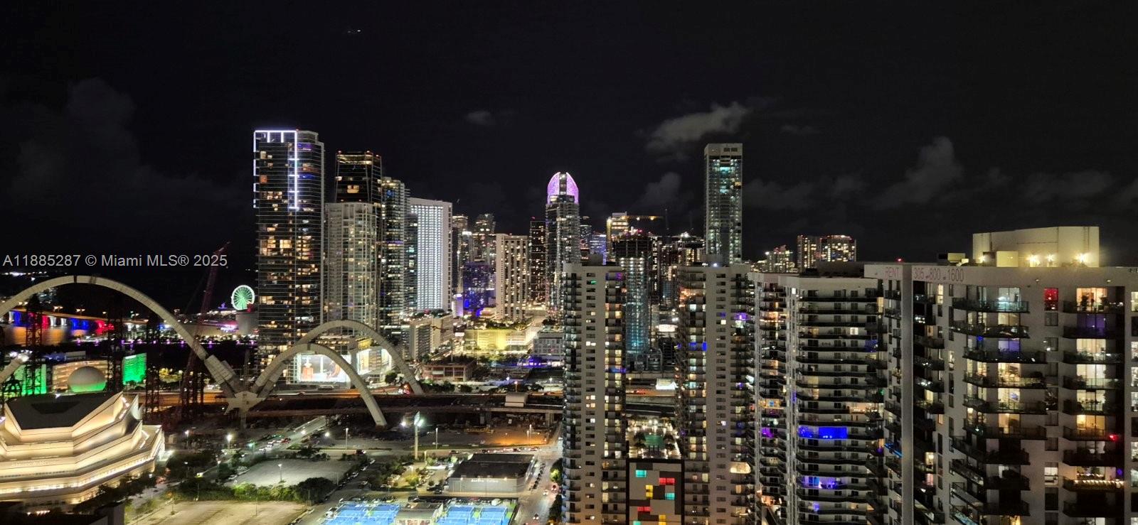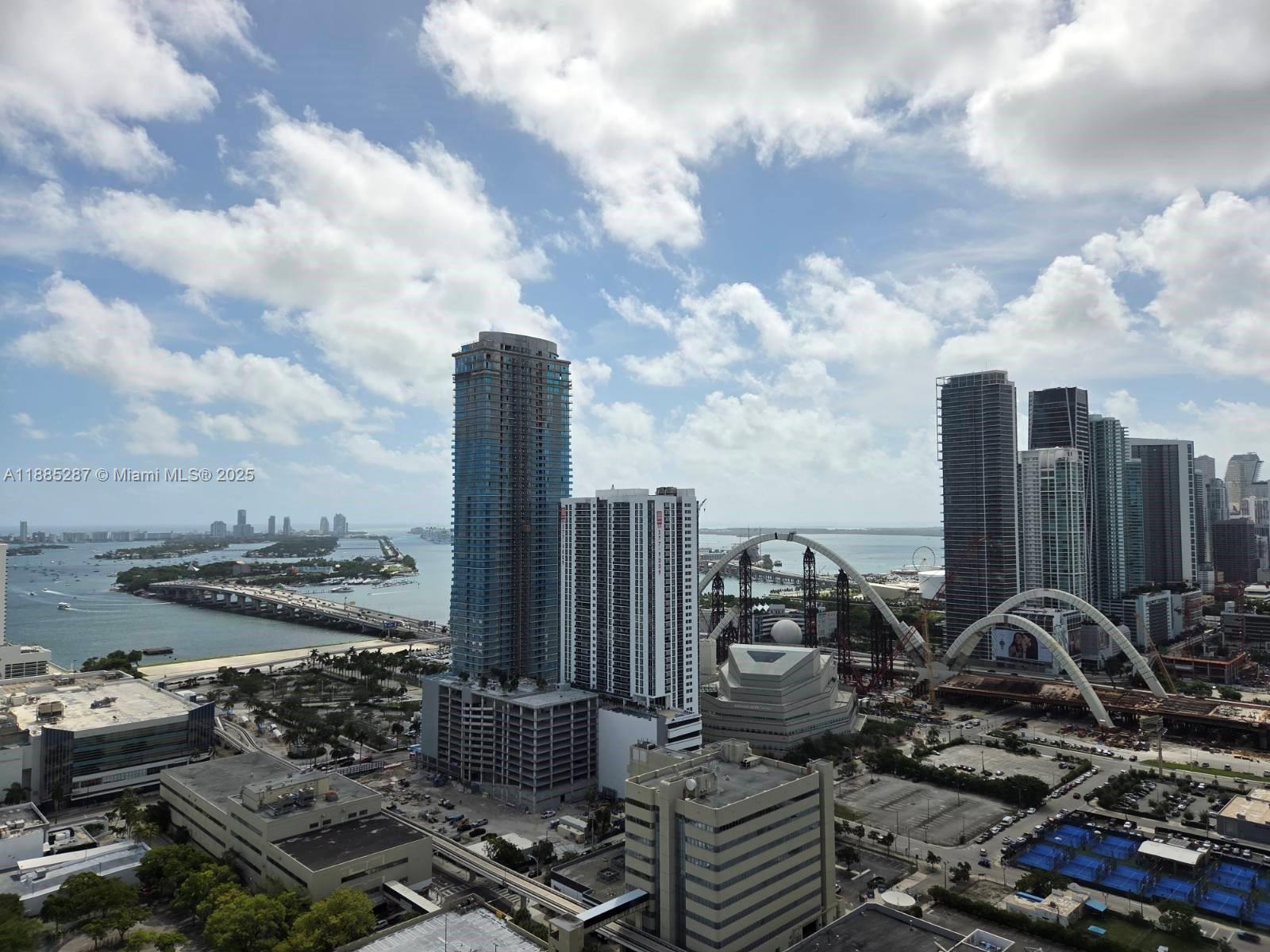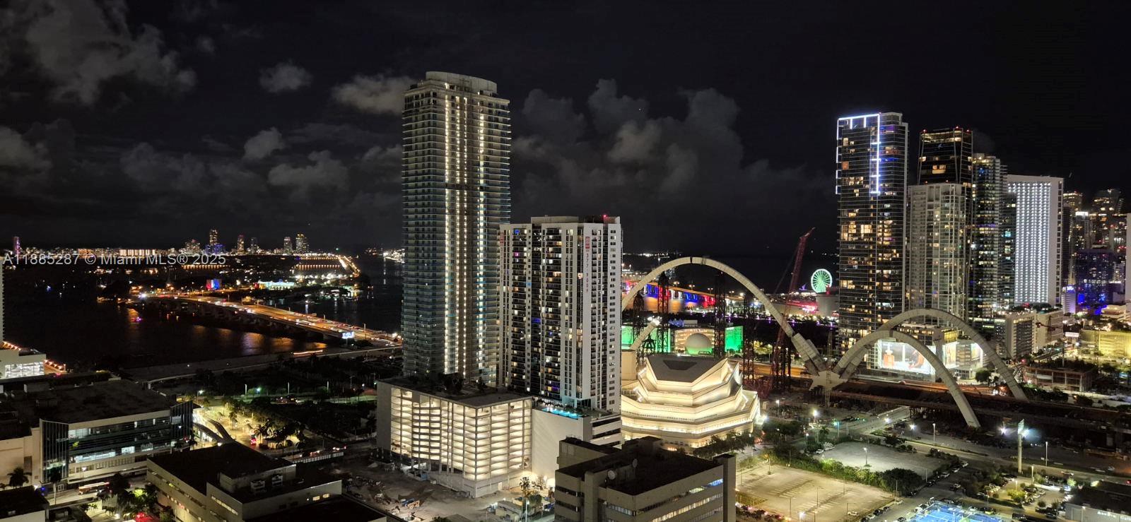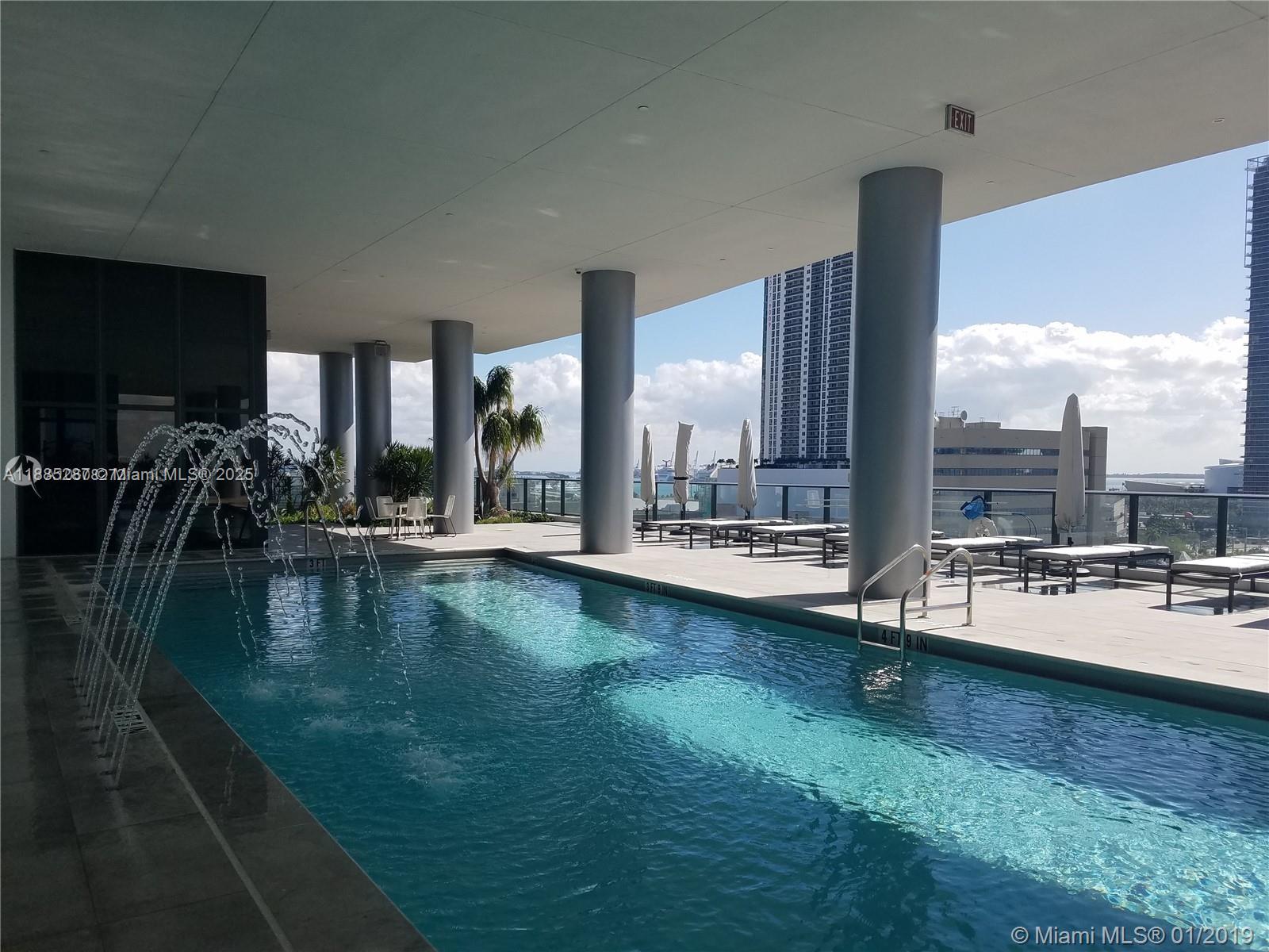 Immaculate 2 bed 2 bath split floor plan apartment with a modern design and breathtaking panoramic city and water views from the south facing 150 square foot balcony. Located in the Arts and Entertainment District, just steps from the metro mover and the Adrienne Arsht Center, and near Downtown Miami, Brickell, Edgewater, and Wynwood. Open kitchen with island, washer and dryer inside unit, floor to ceiling impact windows, Wifi, cable and water included, 1 assigned parking space and 1 valet parking space. Building amenities include: Gym, Yoga Room, Massage Room, Racket ball court, Social Room, Theater, Sauna and 3 pools.