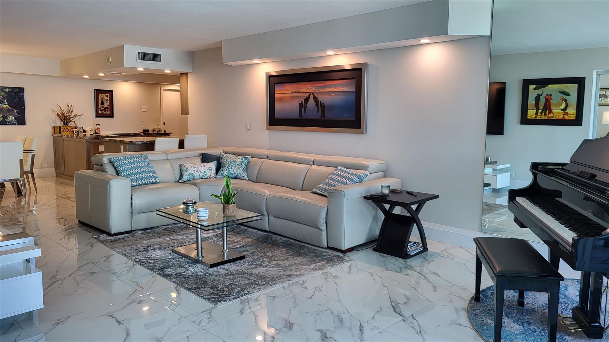 AVAILABLE FOR ANNUAL OR SEASONAL LEASING! Here is the remodeled & wonderfully furnished 2/2 you have been looking to call your home! The foyer greets with custom, high end marble floors, custom cabinetry & gorgeous finishes which carry throughout. The owner spared no expense, creating an exquisite unit with outstanding views. A few more steps in opens up into an expansive living dining area leading to a parlor grand piano & balcony. A chef's kitchen appointed with GE Profile appliances including a double oven & generous elegant top of the line stone counter tops. Both bathrooms are also fitting the most discriminating taste. Enjoy beautiful ocean view from the entire main bedroom and its large walk-in closet with built-ins as well. The guest bedroom has a cool bonus desk/reading alcove.