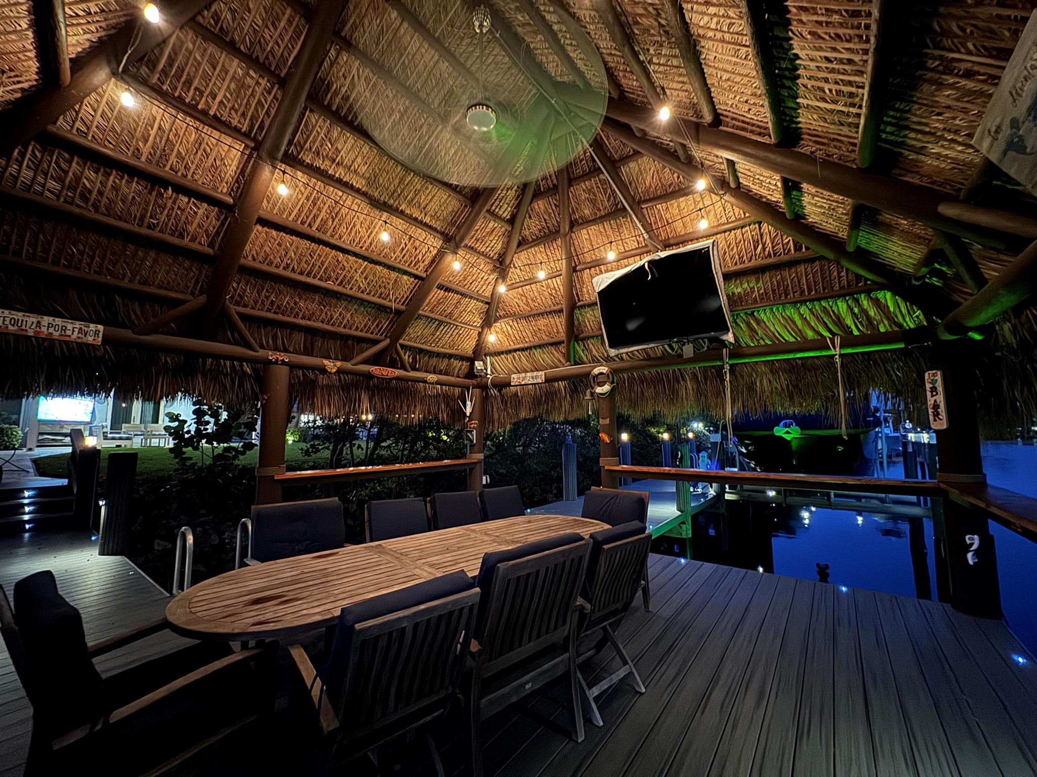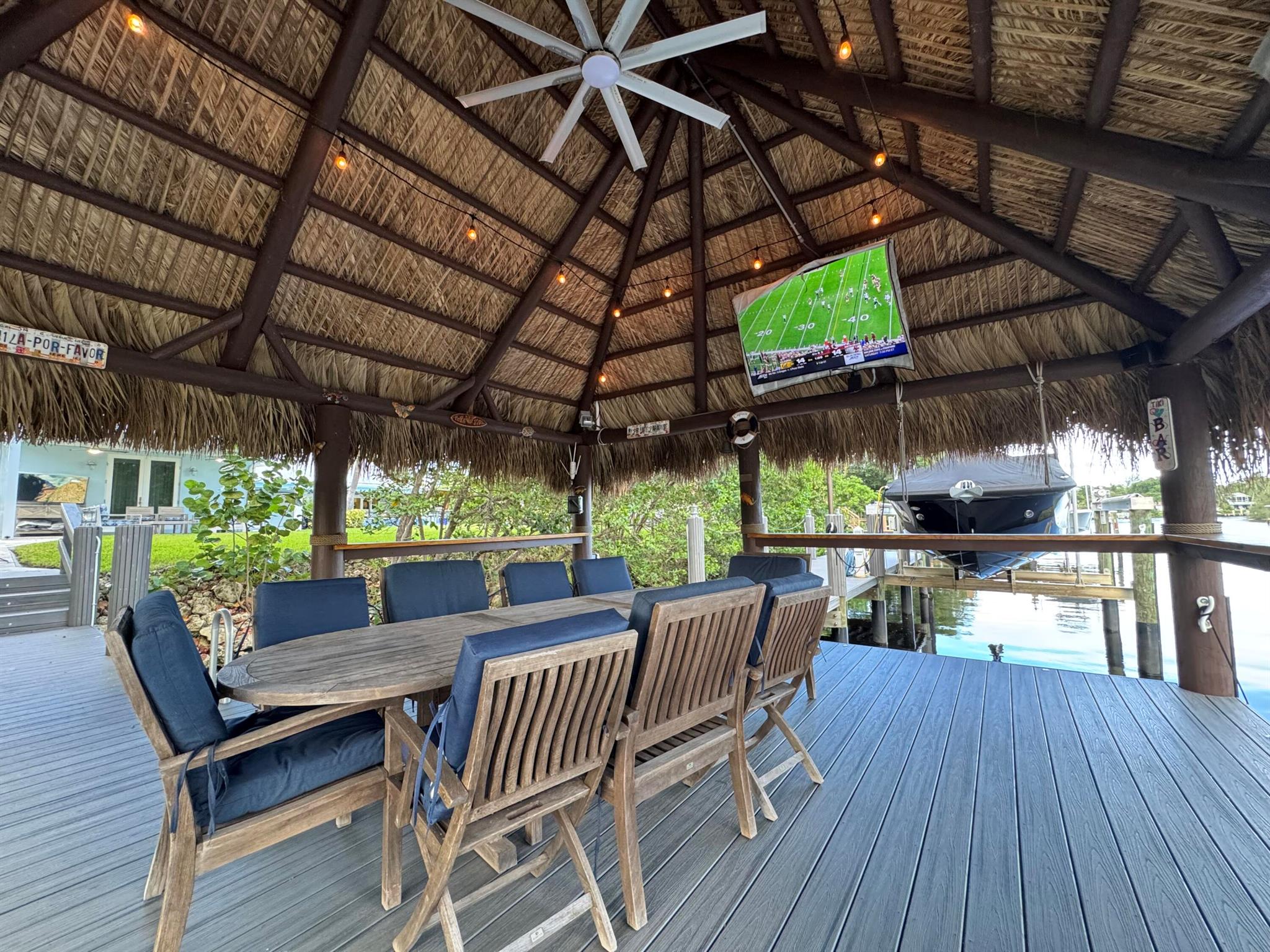 Absolutely immaculate resort style home available for 6 month minimum rental. Completely furnished featuring 5 spacious bedrooms (2 king & 3 queen) and 3.2 luxurious baths. Stocked gourmet kitchen with Thermador appliances and everything you need. The primary bath includes a steam unit, multiple shower heads, massage jets and soaking tub. Each room has zoned AC for personalized comfort and large closets. Gorgeous outdoor space with several entertaining areas: covered outdoor kitchen, Tiki hut on the private dock, Pergola outside primary bedroom and Fire Pit. Enjoy a huge fenced in backyard with heated pool & hot tub. Feel safe with impact windows/doors, metal roof, whole house generator & exterior security cameras. 1 car can easily park in the garage with full gym equipment. Must See!