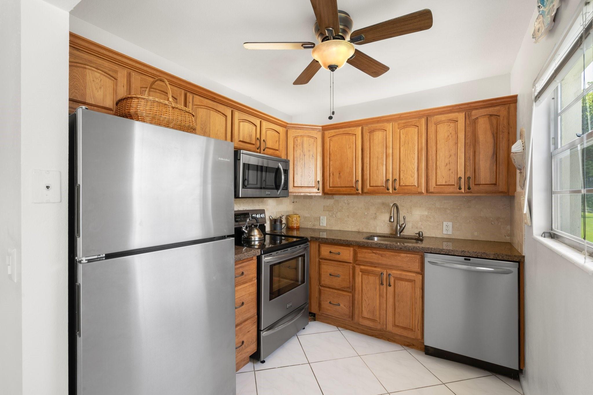 Enjoy worry free living in the community of Century Village. Corner unit, 2 bedroom 1.5 baths. Well taken care of unit with stainless steel appliances and an updated kitchen. Tile flooring in the living spaces and carpeting in bedrooms. Large Balcony to unwind at the end of the day. Plenty to do in Century Village including the newly Renovated Clubhouse, Theater, Indoor and Outdoor Pools, Gym, Card Rooms, Courtesy Buses, Billiards, Tennis, Pickle Ball, and Tons of Social Clubs. Take a tour today!