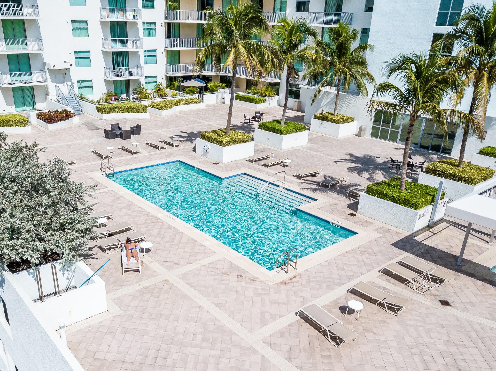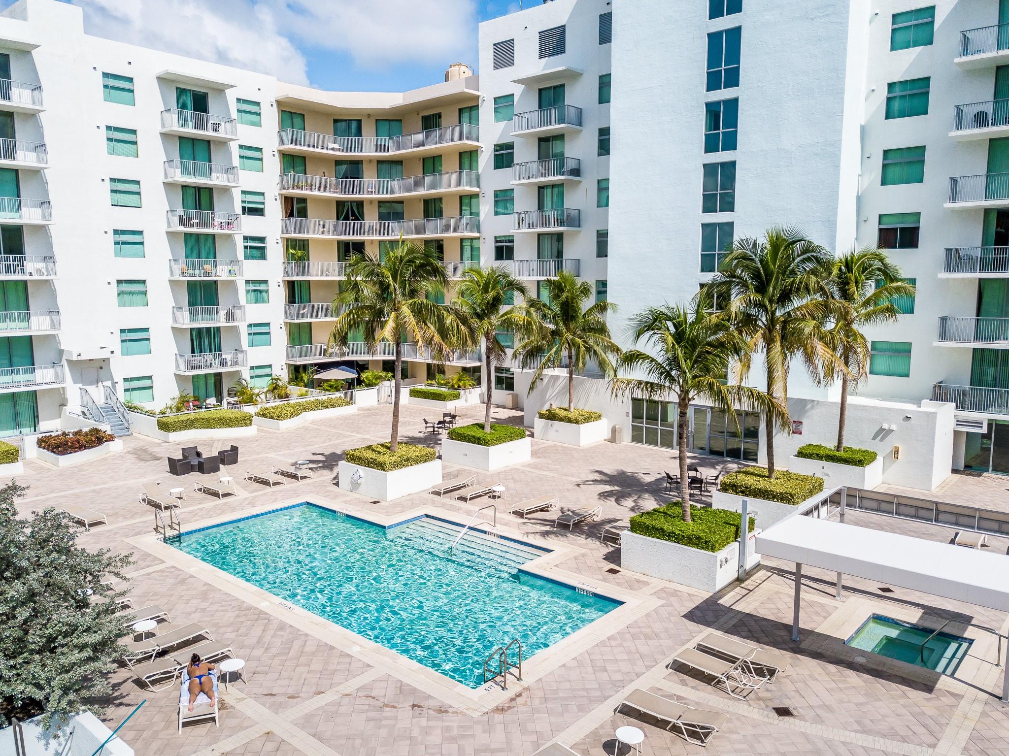 Beautiful one bedroom one bath unit with volume ceilings. This condo is located on the top floor and away from the street and with beautiful views of the pool area. Open kitchen, marble floors and washer and dryer in the unit. Southern exposure with sunlight all year around.