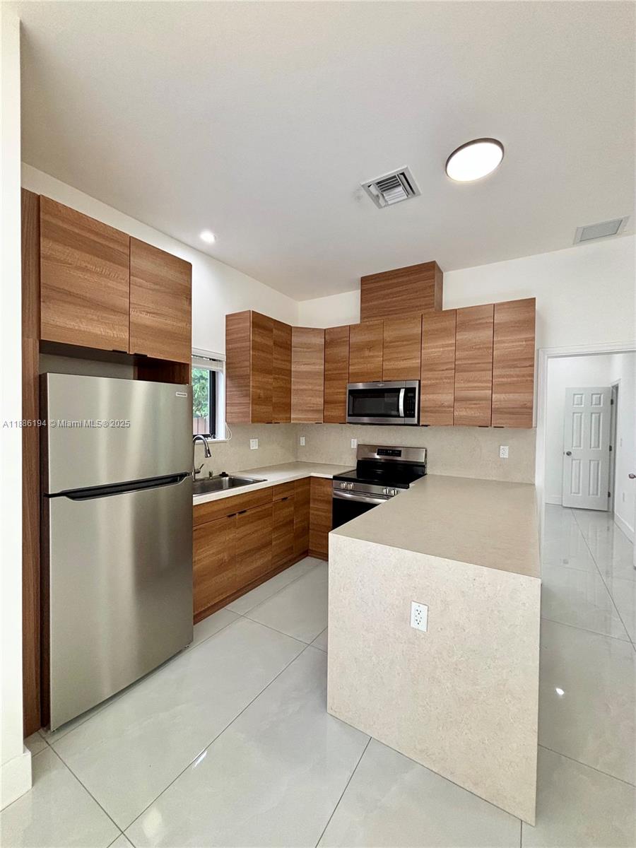 Brand-new construction offering 3 modern residences, including this spacious 2-bedroom, 2-bathroom unit with two reserved parking spaces and all impact windows and doors. Designed with comfort and convenience in mind, the residence features an open-concept kitchen, generous living areas, large walk-in closets, storage closets, and a private backyard for outdoor enjoyment. Fully equipped with all appliances—washer and dryer, oven/stovetop, microwave, tankless water heater, and central A/C—this unit is move-in ready. Ideally located just minutes from major highways, beautiful beaches, and vibrant Downtown Hollywood. A rare rental opportunity with no HOA restrictions in a high-demand area.