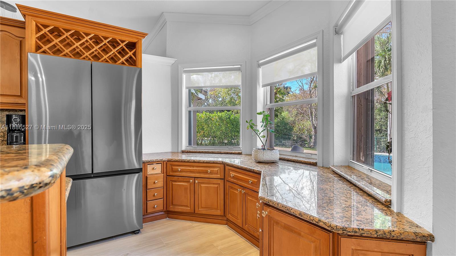 Discover this stunning 4-bedroom, 2-bathroom pool home in the exclusive gated community of Alhambra, featuring serene west-facing views of a private preserve. Freshly painted and boasting a series of recent upgrades, this home is move-in ready. Enjoy the durability and style of a concrete tile roof installed in 2018, elegant porcelain wood-like flooring, and new kitchen appliances. Additional upgrades include a new AC system, and hurricane impact garage door. This home is has hurricane impact accordion shutters, a brick paver driveway, and a split floor plan with an open concept that's perfect for entertaining. Additional features include a two-car garage, energy-efficient LED fixtures. Located in a community with top-rated schools and offering easy access to I-75 and US-27.