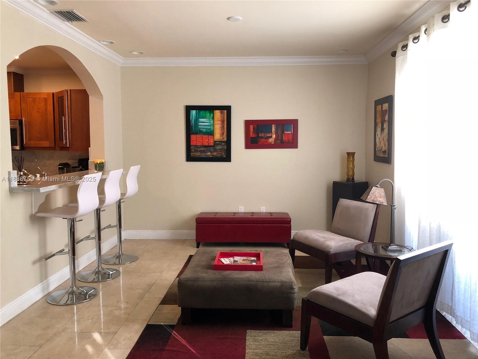 Only in Coral Gables can you enjoy the best of Miami living. This elegant 4 bed/3.5 bath split-level villa offers 1,884 SF of timeless style and clean lines. Grand formal/informal spaces flow into a sunlit chef’s kitchen with breakfast area & great room. All wood/tile floors, bright open layout, spacious bedrooms, resort-style feel. Located on tree-lined streets in a gated community with top-rated schools. Walk to Downtown Coral Gables for dining, shopping & culture. Features include 1-car garage, impact