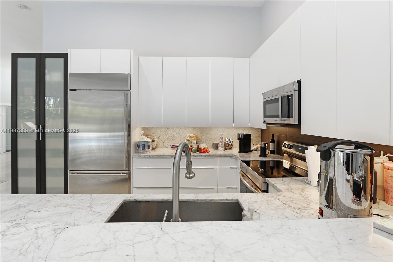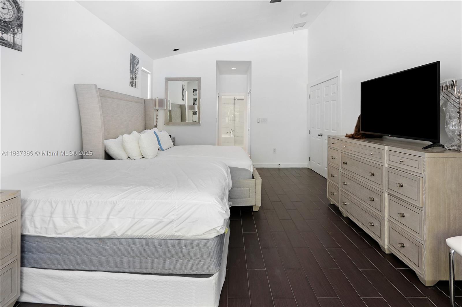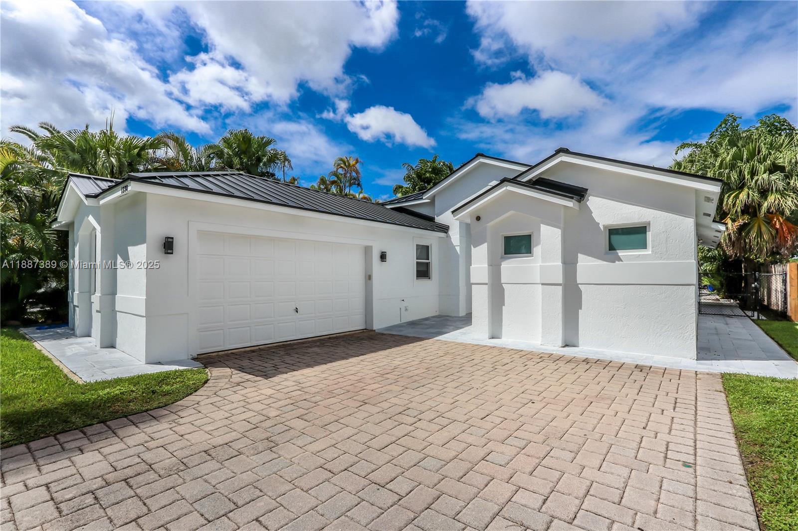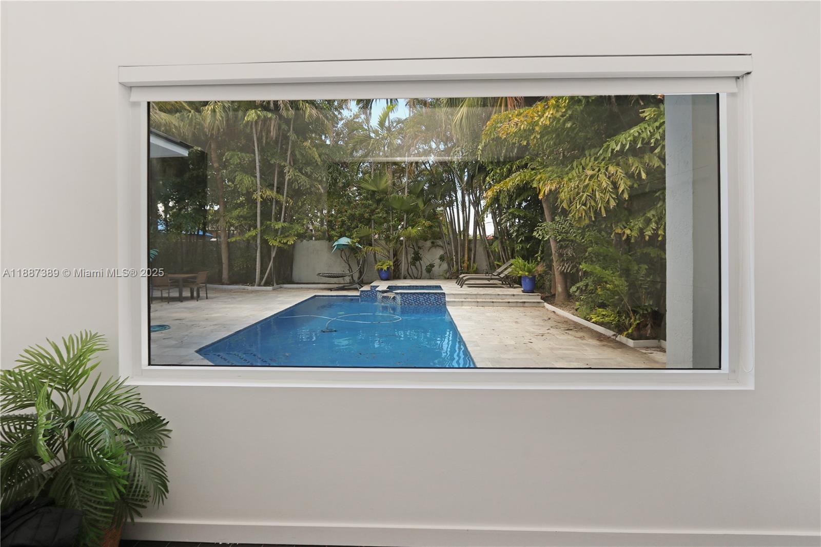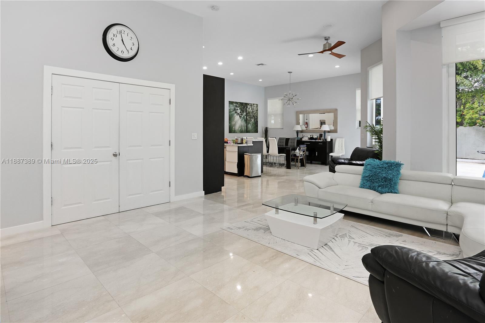 This beautifully crafted 3 bed, 2.5 bath home with pool and additional den/office sits on a quiet cul-de-sac just minutes from Hollywood Beach! Vaulted ceilings, marble floors, and expansive windows create a bright and airy atmosphere, while the open kitchen shines with quartz countertops and stainless steel appliances. The split floor plan offers privacy with a versatile den for office or guest use. The primary suite is a luxurious retreat with a sitting area, spa-like bath featuring a roman tub and walk-in shower, and custom closets. A fenced backyard with pool and patio is perfect for entertaining or unwinding. Freshly painted inside and out, complete with a new roof, two-car garage, and ample parking, this move-in ready residence combines comfort with timeless elegance.