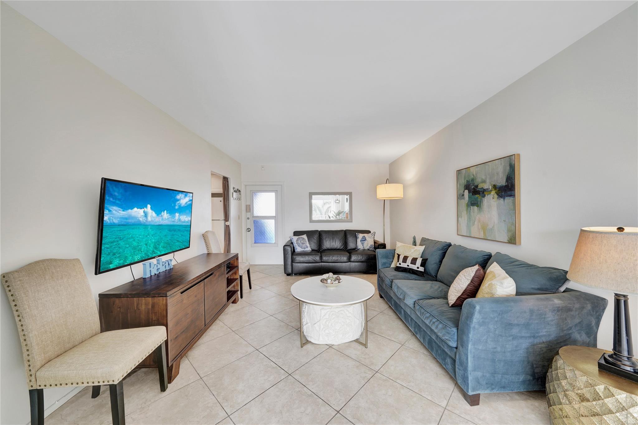 FULLY FURNISHED: Cutest Condo 4 minute walk to BEACH! Make your dream to live by the sea a reality. No need to spend another winter in the COLD! Enjoy the tropical setting and view right outside your window & bask in the sunshine. Conveniently located near elevator & stairs, your parking spot #22, is just steps from elevator. Tile throughout, updated bathroom and kitchen, 3 closets, top floor unit, 1 sofas is a pull out bed. Many upgrades including light fixtures & recessed lighting. NEW IMPACT SLIDING GLASS DOORS AND WINDOW! Walk to the best spots in Lauderdale by the Sea & Pompano Beach Pier. Rent includes maintenance for building exterior, Insurance, Water, Fitness Center, Community Room, Pool, Security Cameras & Laundry. You're going to LOVE IT Here!