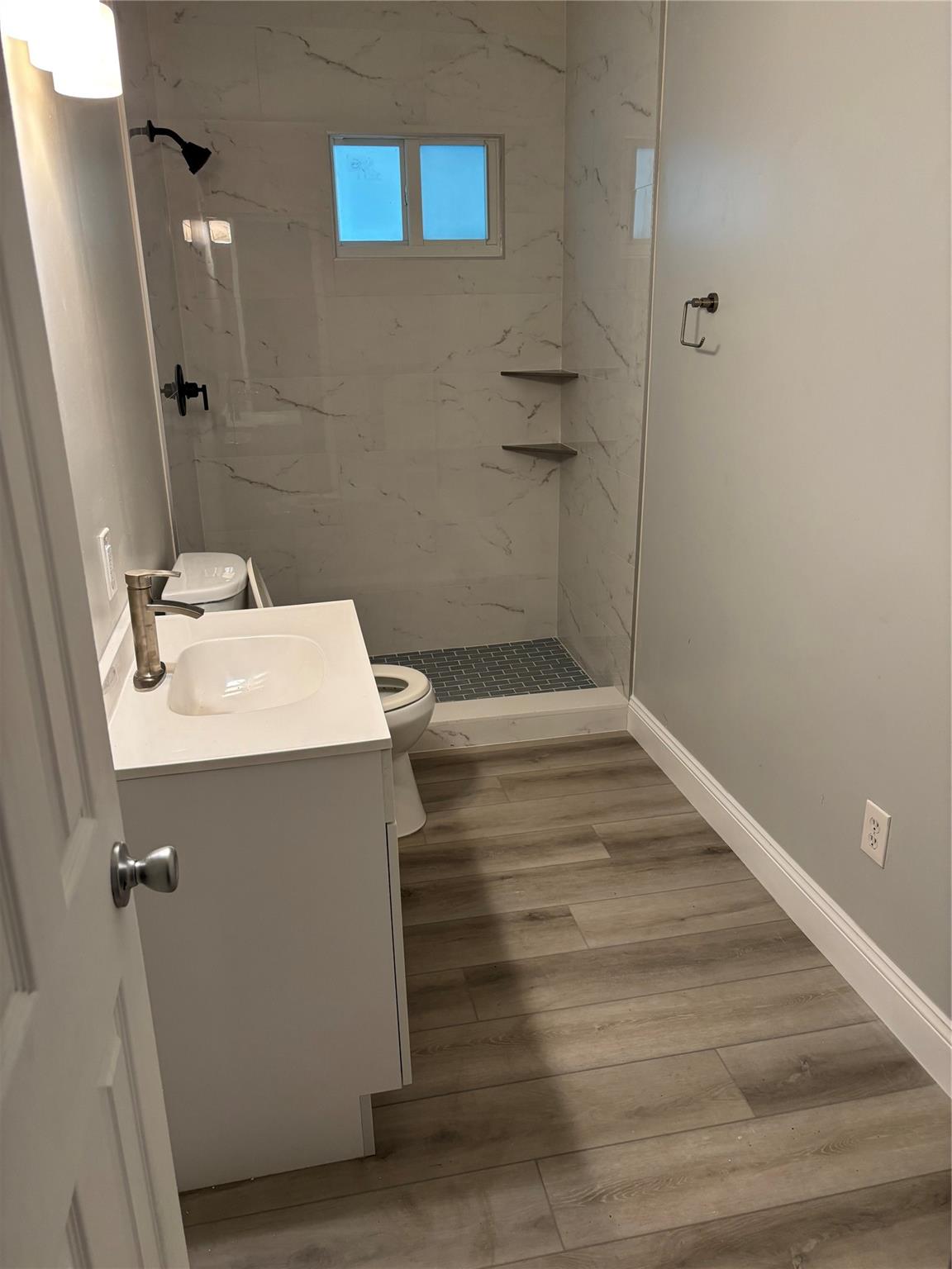 Completely remodeled 1BR/1bath in Coral Ridge Isles between I-95 and beaches. New kitchen with quartz countertops and white shakers cabinets. Appliances are less than 2 years old. New bathroom never used. New flooring with high end vinyl wood plank in entire unit. Very large private screened in patio with fenced in backyard. Hurricane impact windows and doors. Unit is part of a triplex accessible from the backyard. No HOA. Unit is currently vacant. Fast move in possible.