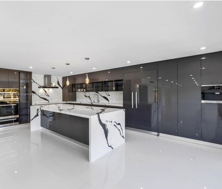 Discover your next home in the exclusive Golden Isles community, with a beautiful canal view and polished concrete entry. Luxury renovations with high quality,Spacious rooms with wood closets designed and installed by Ocean Design Gallery. New impact doors and windows feature fine 40x40 Spanish white porcelain tiles.The kitchen has been remodeled with new kitchen cabinets and Kobe Barenia wood veneer/Graffito wood veneer.Modern Spanish-made cabinetry designed and installed by Ocean Design Gallery. The island and countertops are in polished Calacatta Black quartz stone.New dock for 80 ft All appliances are MIELE.New tile roof,new landscaping,completely remodeled pool with salt water system, and new dock. Ready for its new owner.