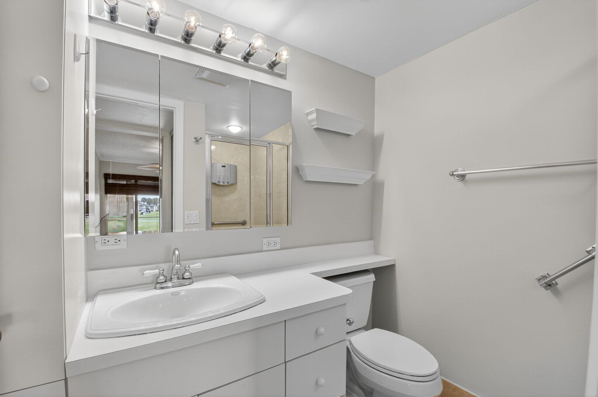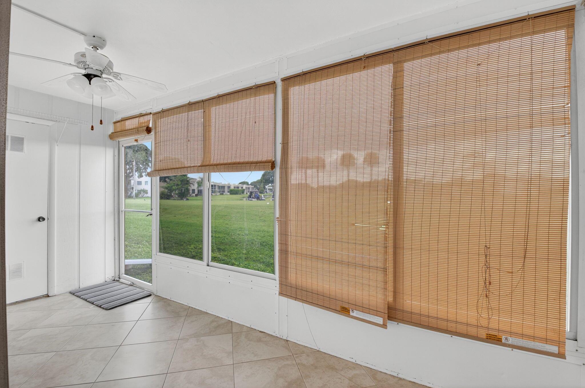 FABULOUS GOLF AND WATER VIEW FROM ENCLOSED, AIR CONDITIONED PATIO! First floor lovely condo with upgrades throughout including beautiful open concept kitchen. Extra closet storage with custom shelving in all closets. Full size washer and dryer. Short walking distance to the Flanders clubhouse and pool! Close to Linton Avenue gate providing easy driving access. Come enjoy clubs, activities, live shows, movies 2 restaurants and more at very active Kings Point 55+ community.