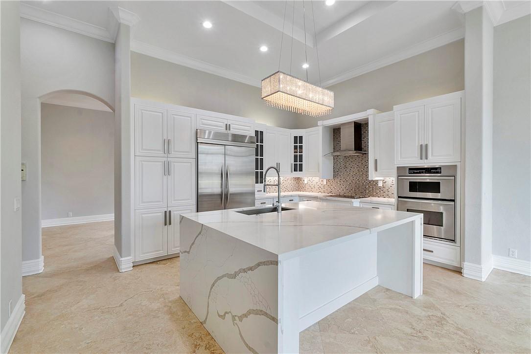 Heron Bay-The Glen, No HOA approval, Updated 5 bedrooms + sitting room/office/nursery on master bedroom extension,12 foot ceilings, 3 full bathrooms, extended Cardina model, guard-gated 24/7 security. New metal roof & full new metal gutters & drainpipes, marble & Porcelain flooring. Bright white chef’s kitchen w/white quartz counters & waterfall drops, stainless appliances, newer oven, microwave & dishwasher, updated white bathrooms w/quartz countertops, closets by design, LED lighting, white blinds. Mother-in-law or teen suite. Screened back & side patios. fully fenced back garden with 3 gates, room 4 pool, A+ schools, School bus stops at end of street. 2 resort-style clubhouses & pools, 2 gyms, waterpark, 13 tennis, & 6 pickleball cts, basketball, walking trails.