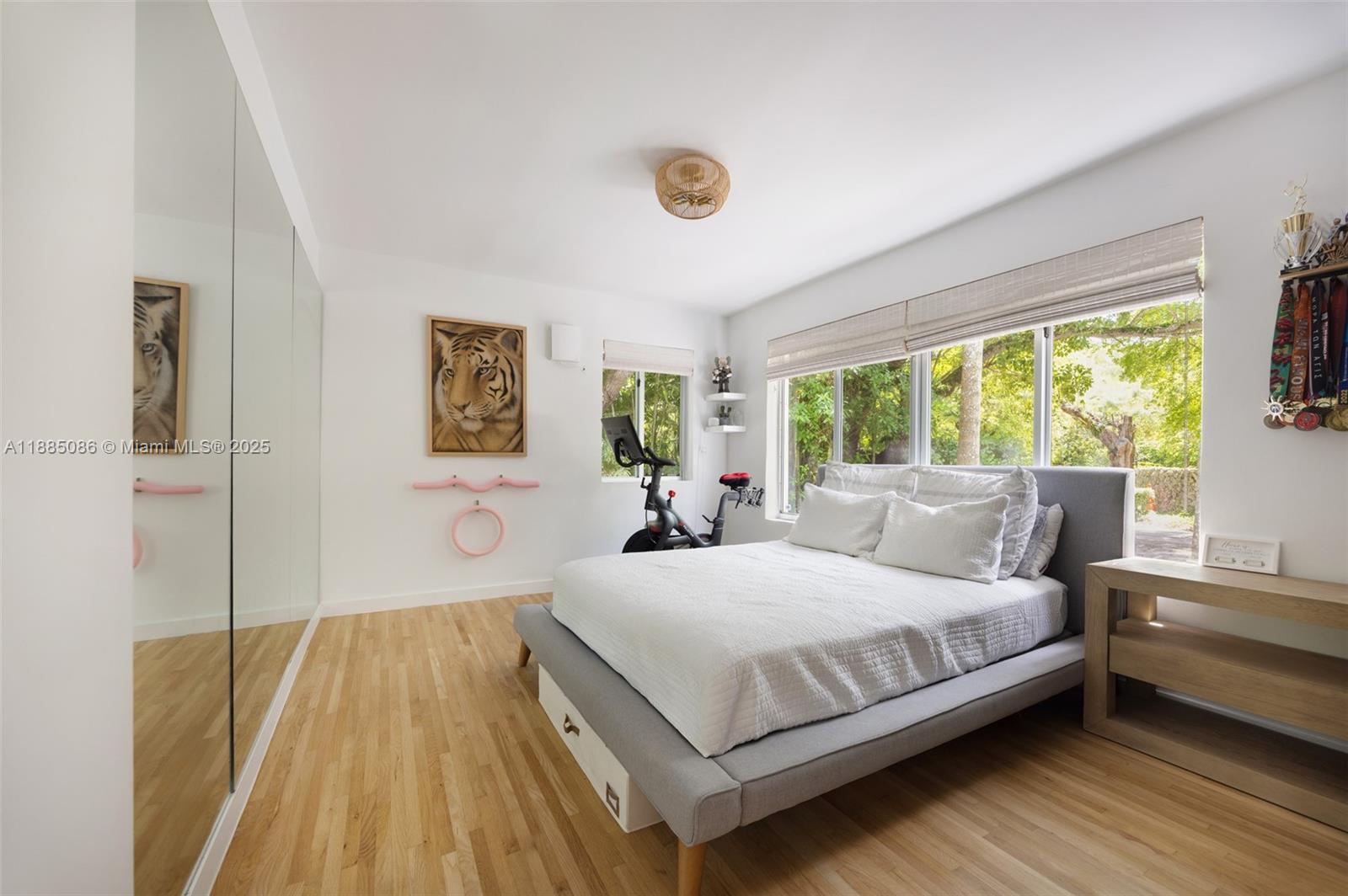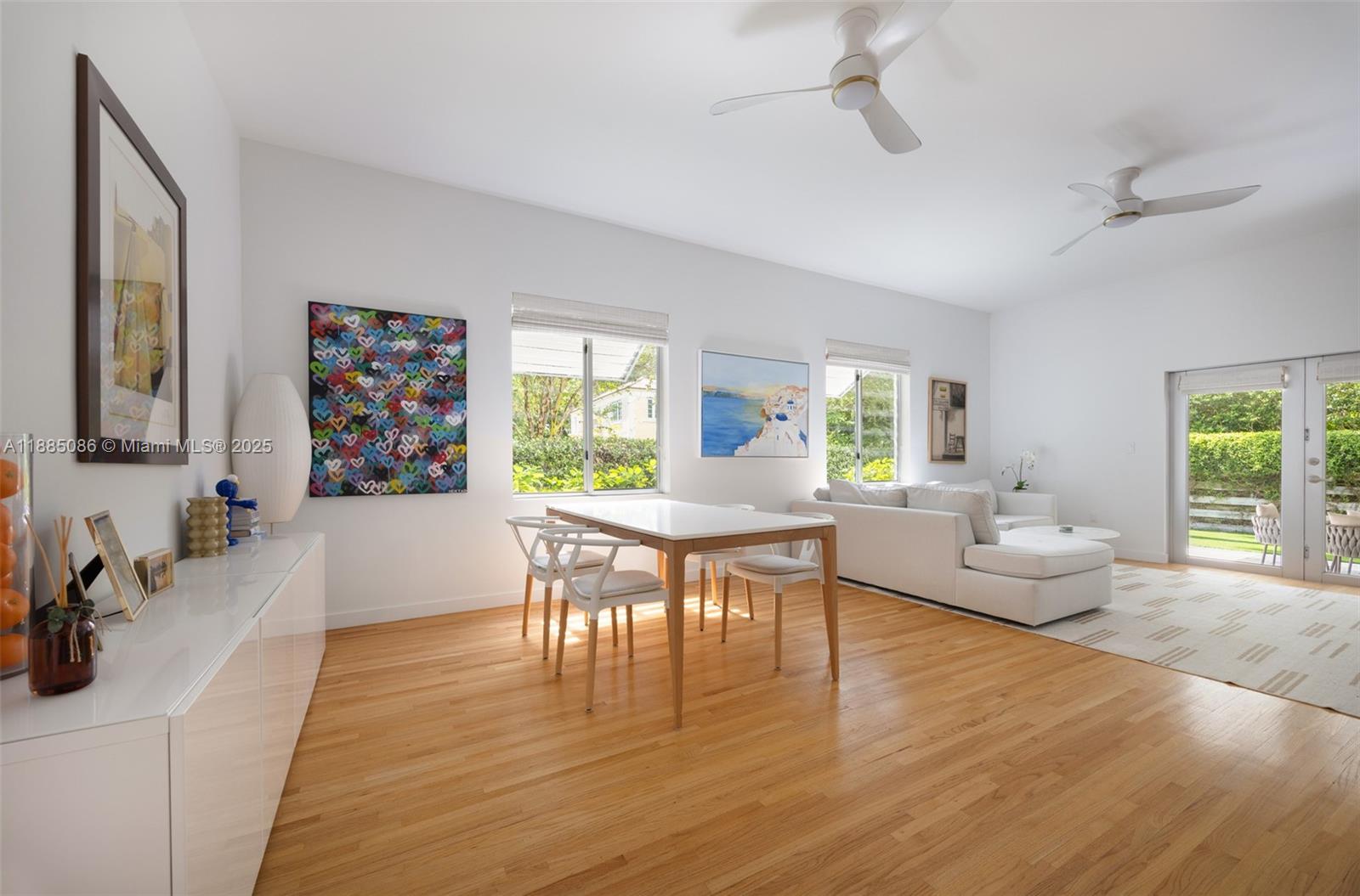 Modern design meets tropical tranquility in this renovated Coconut Grove retreat on sought-after Bougainvillea Rd. Just moments from village cafés, parks, and marinas, the home features impact glass, a new roof, and light-filled interiors with 10-ft ceilings and wood floors. The Euro-style kitchen showcases Italian teak cabinetry, stainless countertops, and premium appliances. A spacious primary suite offers a spa-like bath, walk-in closet, and garden views. Enjoy effortless indoor-outdoor living with a covered terrace and turf yard ideal for year-round entertaining.