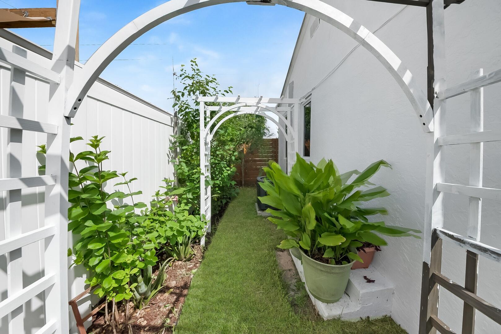 Discover a rare opportunity to lease a piece of Delray's authentic charm. This vintage two-bedroom cottage is an enchanting oasis set against the exciting backdrop of downtown living. Here, a lifestyle of convenience and coastal sophistication awaits. The home offers a comfortable and serene living space, while the grounds provide a private escape unlike any other. The expansive, fully enclosed garden is a verdant sanctuary designed for both tranquil relaxation and memorable entertaining. Mature landscaping, a charming trellis, and dedicated garden space create a picturesque setting for alfresco dining or quiet contemplation. With a private driveway, hurricane-rated windows, and the simplicity of inclusive utilities (excluding internet), every detail has been considered for your comfort.