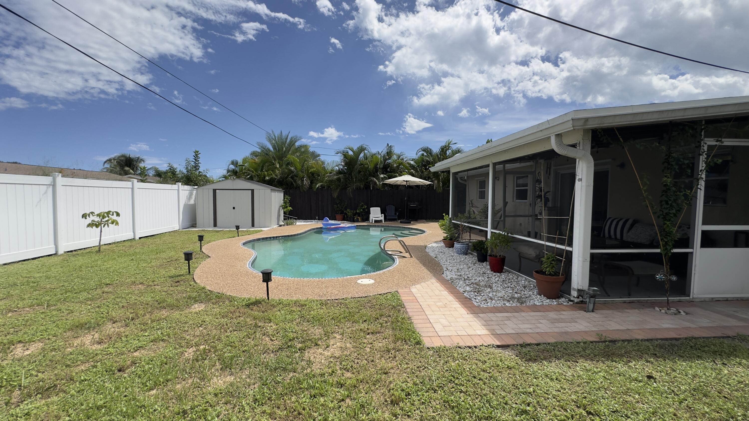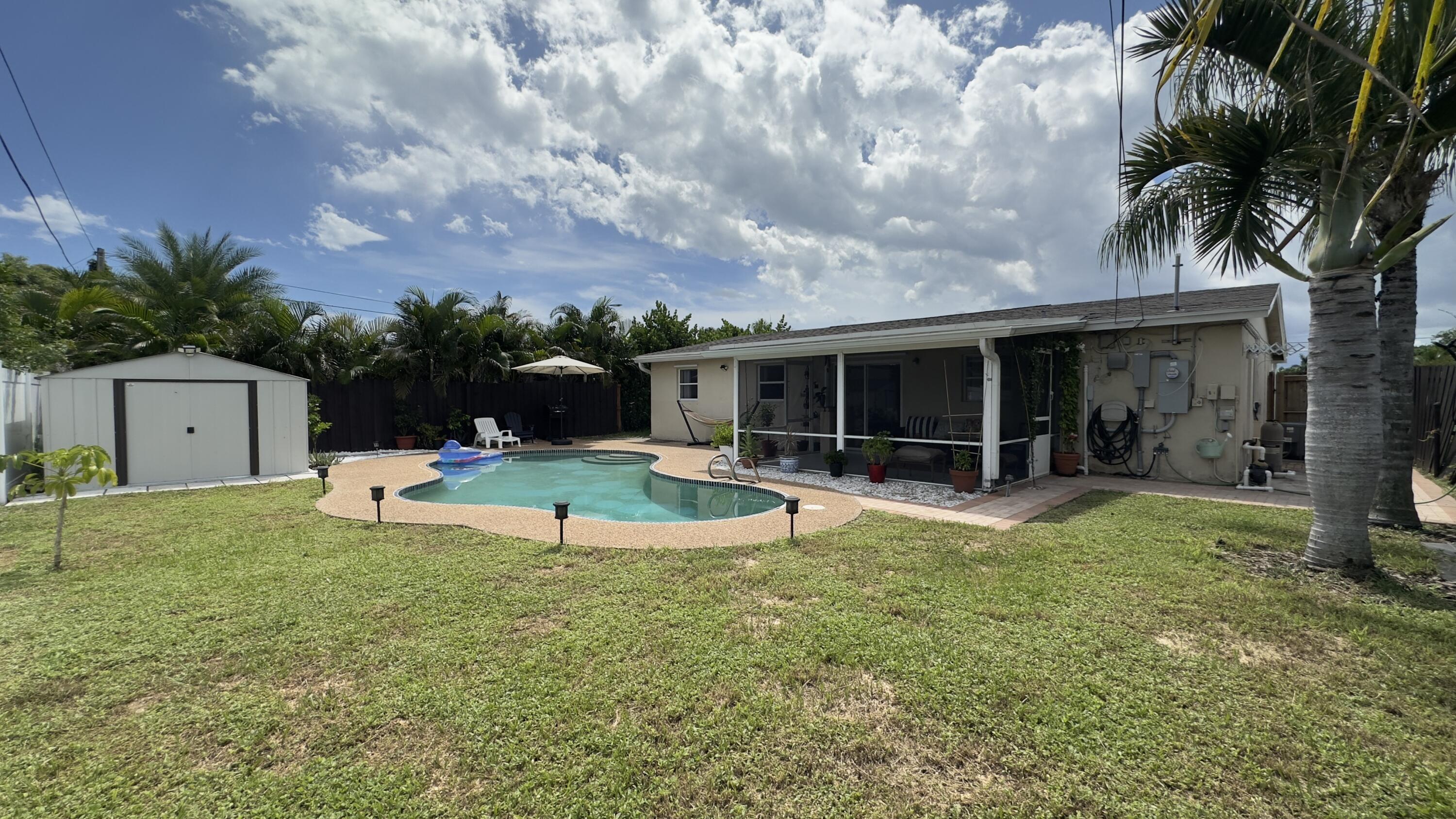 CHARMING PALM BEACH GARDENS UNFURNISHED SINGLE FAMILY POOL HOME FEATURING THREE BEDROOMS ONE BATH AND 1252 SQ FT. TILE FLOORING THROUGHOUT. KITCHEN WITH WHITE CABINETRY AND STAINLESS APPLIANCES. FULL SIZE WASHER / DRYER. UPDATED BATHROOM WITH WALK IN SHOWER. SCREENED IN PATIO OVERLOOKING THE FENCED IN BACKYARD AND POOL. LAWN AND POOL CARE INCLUDED. PET FRIENDLY!