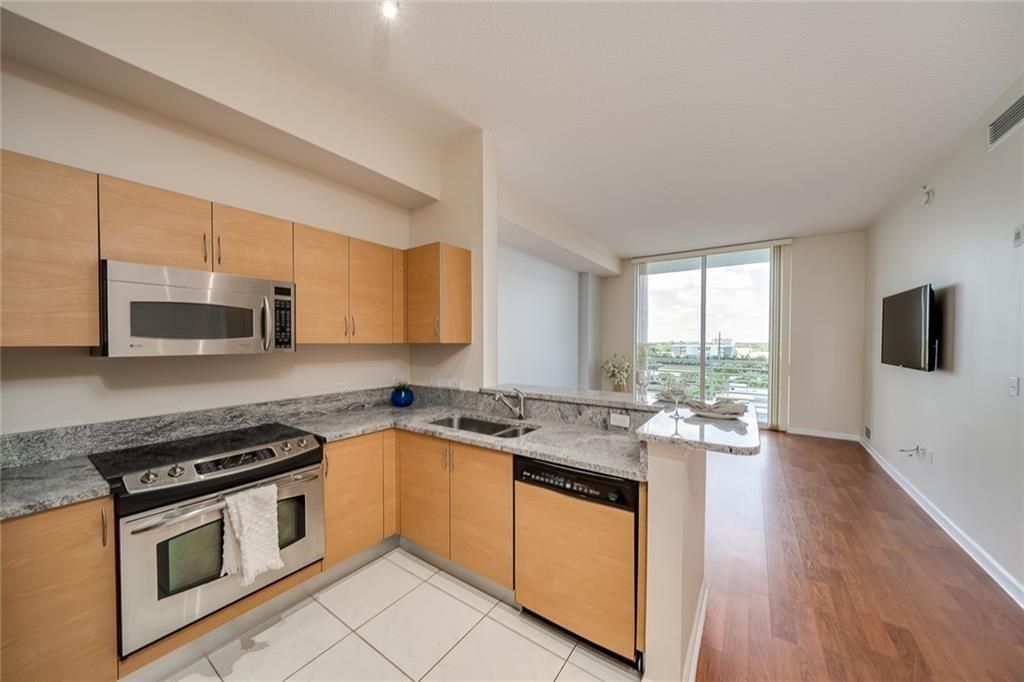 This PENTHOUSE features a spacious 1/1 floor plan with 11FT HIGH ceiling and open views. Laminate floors throughout, open kitchen with Italian cabinetry and granite counter tops. NEW A/C 2023. One assigned parking space, valet parking available. Contemporary lobby and amazing amenities, such as infinity edge pool, cabanas, well equipped gym, movie theater, party/billiard room, business center, cybercafé and all the convenience at your doorstep, such as charter school, Publix supermarket, variety of restaurants, banks and shops. Available 12/1/2025