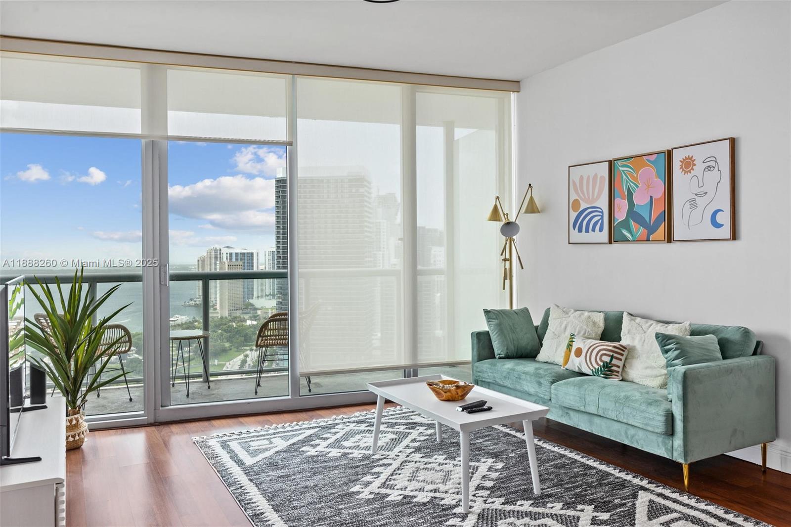 Enjoy breathtaking views of Biscayne Bay and downtown Miami's skyline from the 40th floor of this beautiful 1/1 plus half bath at Marina Blue. Wood floors throughout. Large walk in closet. 1 storage locker included in rent. Bldg features: sunrise & sunset pools, hot tub & plunge pool, 24-hour security & concierge, valet, business center, gym, yoga/aerobics room, BBQ grills & outdoor dining area, club room, 5-hole putting green & Wi-Fi Internet access throughout the common areas. Walking distance to the AAArena, the Shops at Bayside, Arsht Center, PAMM, Frost Museum, tons of restaurants & metro mover conveniently located behind the building. One time $150 cleaning fee to be paid upfront.