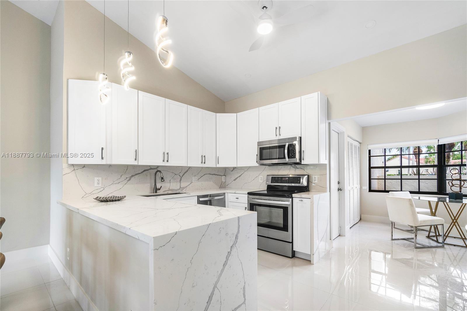 Experience modern living in this beautifully renovated 2-bedroom, 2-bath villa available for rent in a peaceful 55+ community. This stylish home features 24x24 porcelain tile flooring, a designer kitchen with quartz countertops and stainless steel appliances, and updated bathrooms with new vanities, tubs, showers, and sleek tile finishes. Thoughtful upgrades include new lighting, switches, and outlets. A brand-new 2024 HVAC system and new tile roof ensure year-round comfort. Enjoy elegant, low-maintenance living in a welcoming, active adult environment. $203 monthly special assessment for roof replacements applies.