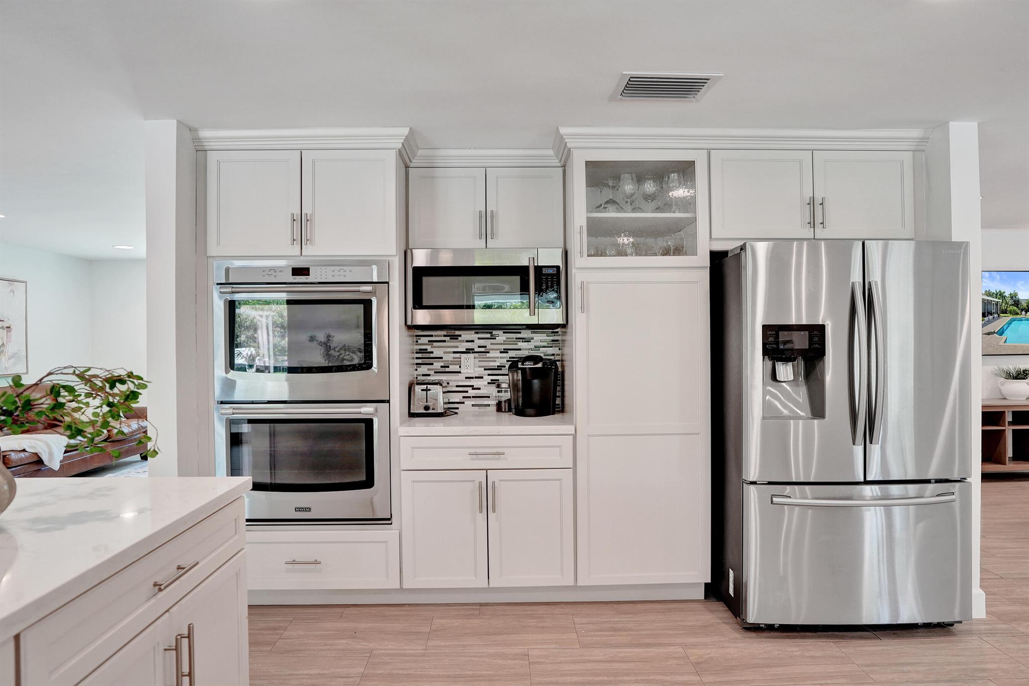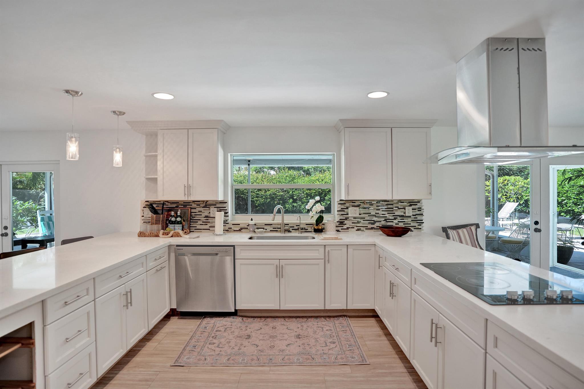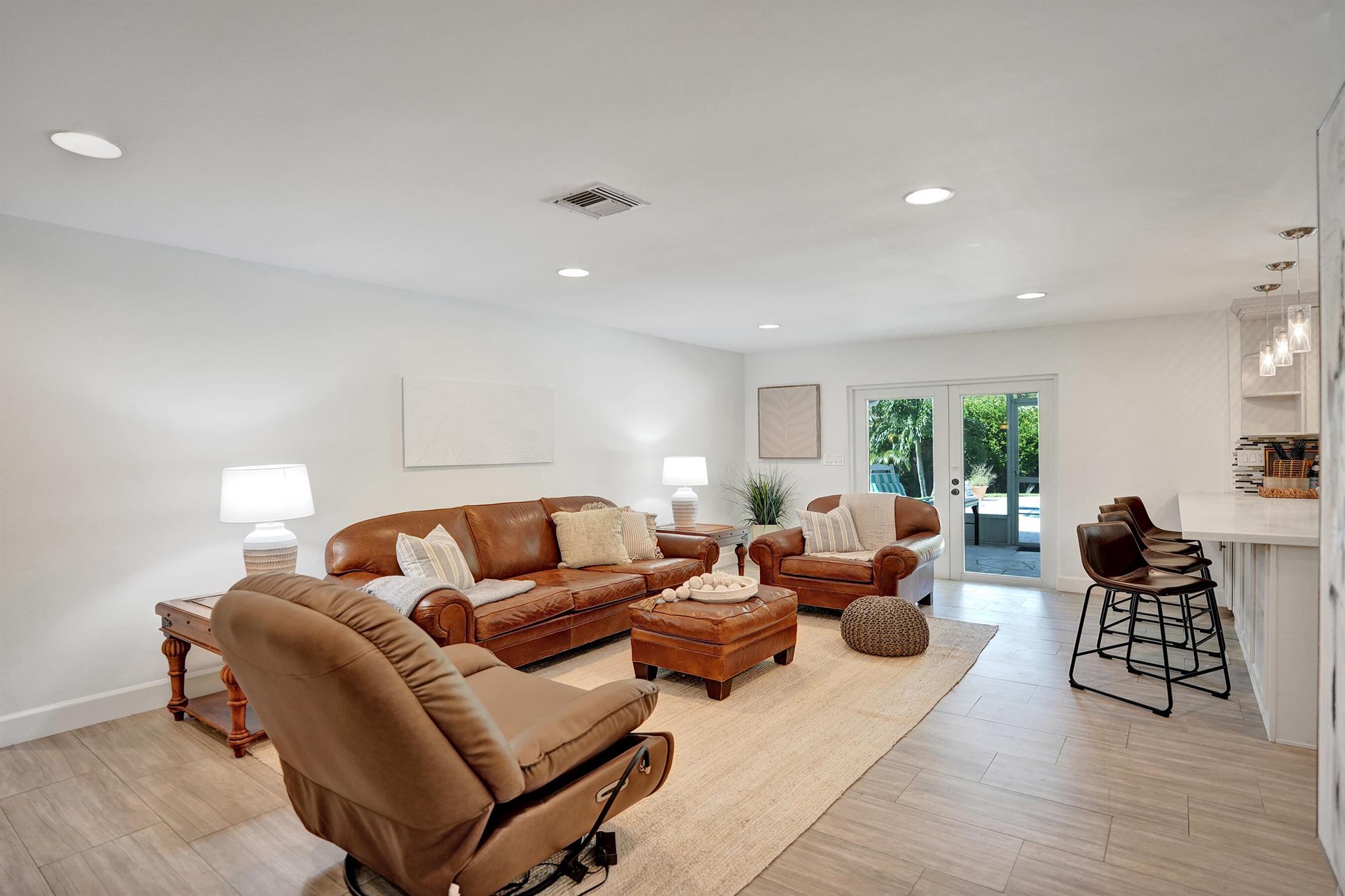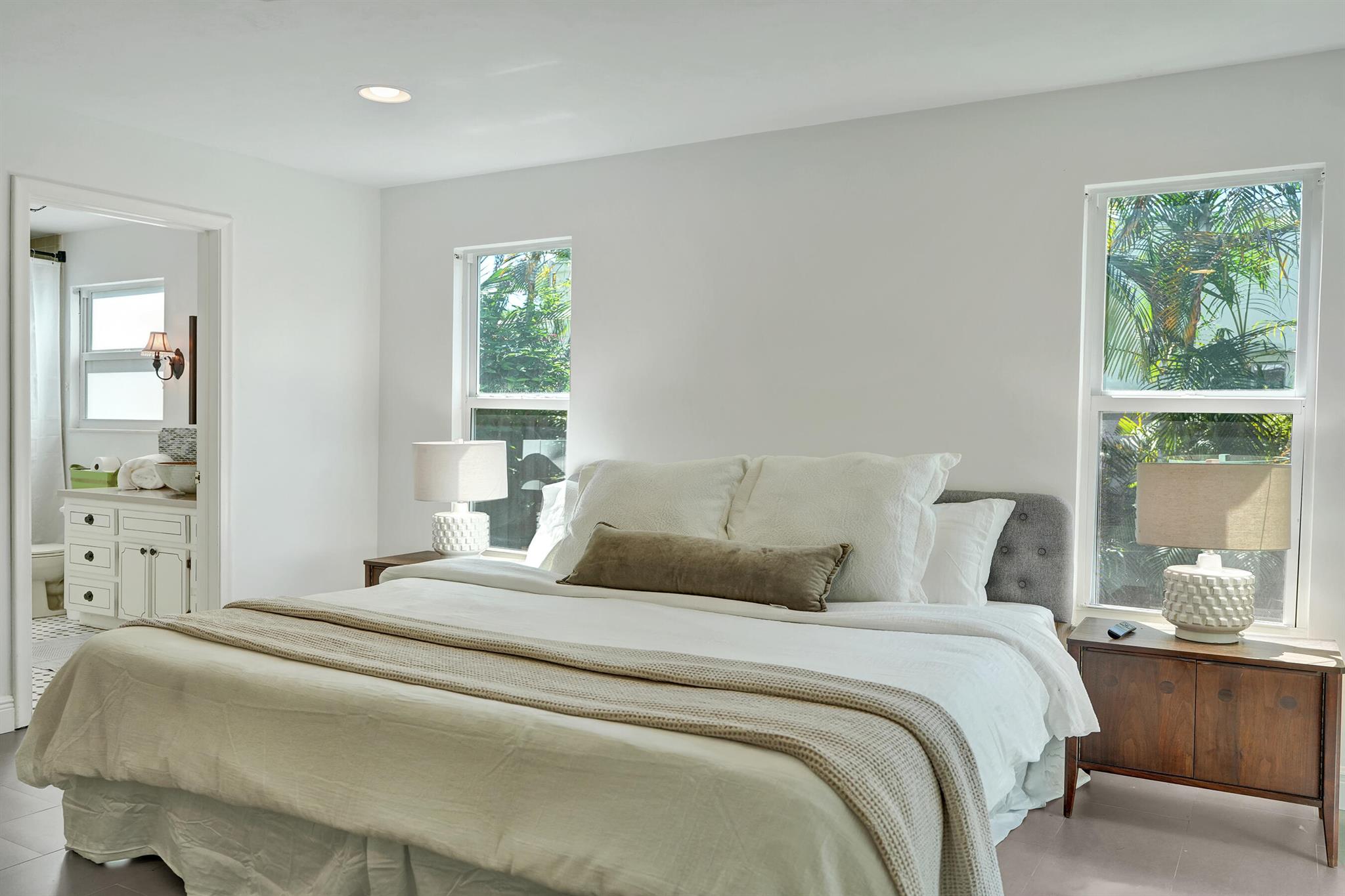 Step into this freshly painted, light, white, and bright South Florida cottage, a tranquil beach-inspired escape that feels like a page out of a luxury lifestyle magazine. Perfectly located in East Delray Beach, this tastefully furnished three-bedroom, two-bath home delivers elevated charm with a modern coastal twist. With two spacious living areas designed for both relaxation and entertaining, you'll have room to stretch, unwind, and make unforgettable memories. The updated kitchen features custom cabinetry, quartz countertops, and everything you need to host or enjoy quiet, breezy mornings. The oversized backyard is a showstopper, complete with a massive pool, lush landscaping, and a screened-in covered patio that is perfect for al fresco dinners or sunrise yoga. Inside, indulge in two