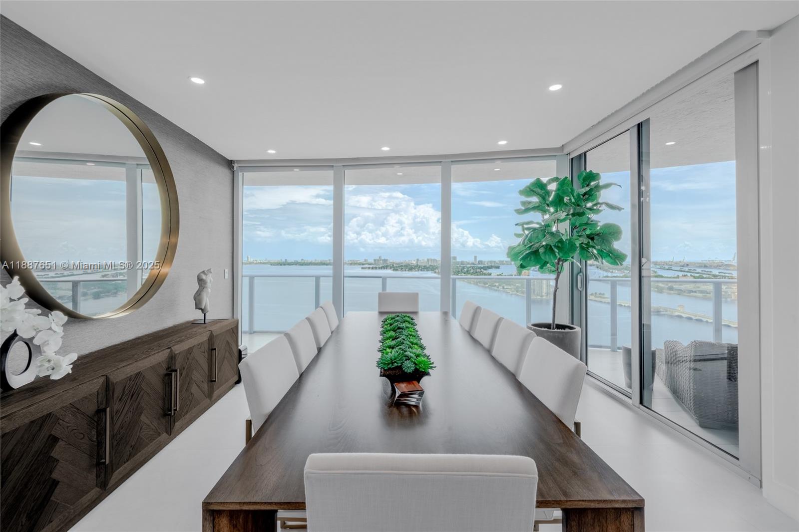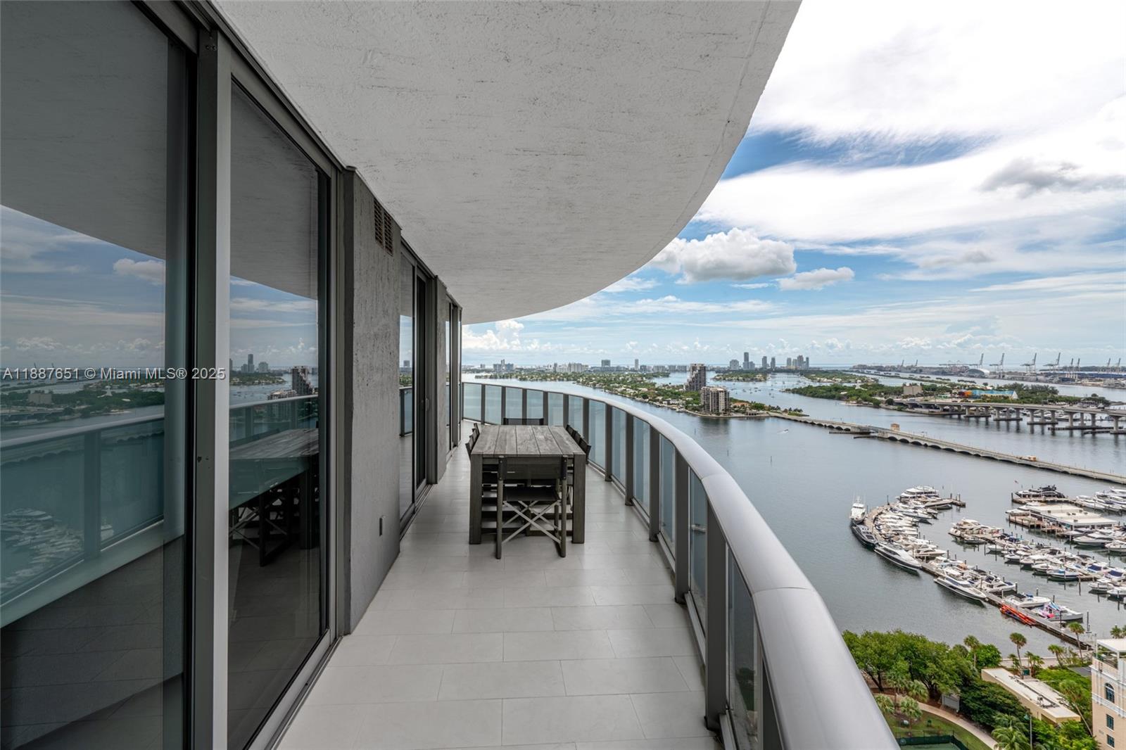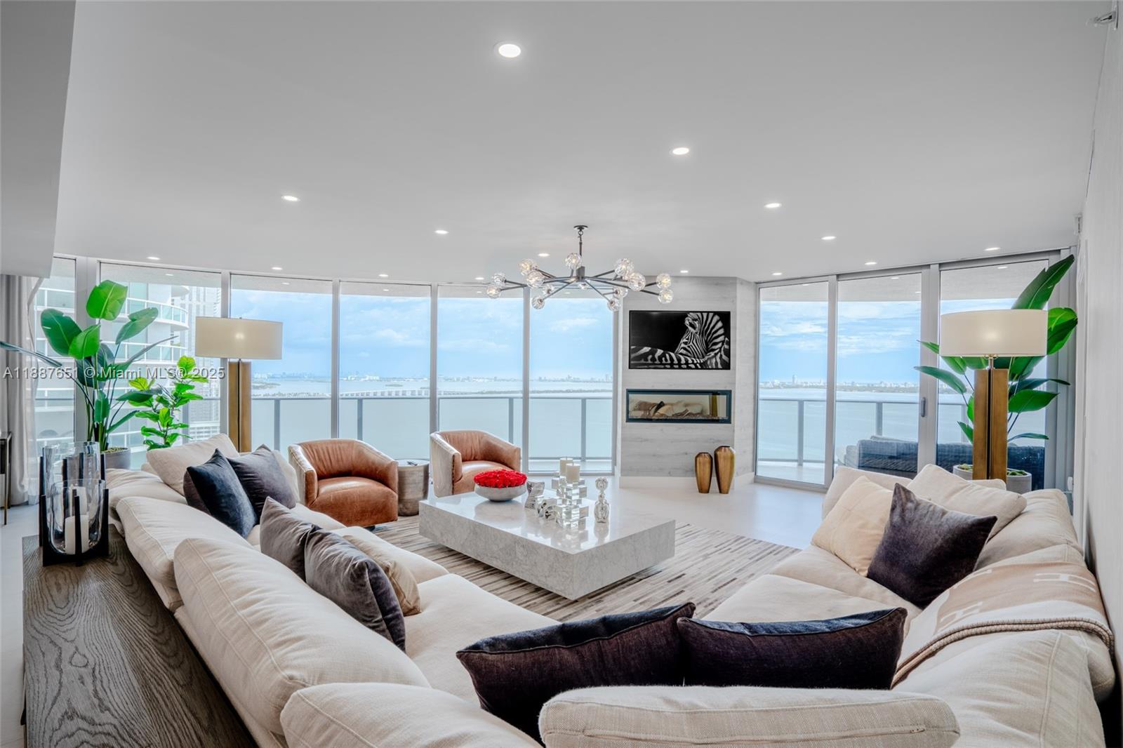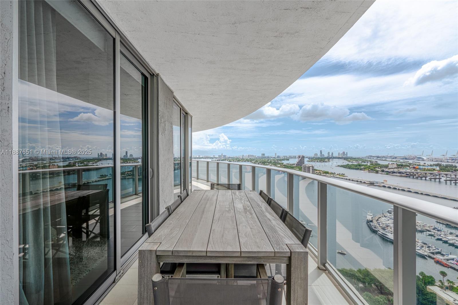 Experience an extraordinary “mansion in the sky” at Aria on the Bay. This rare double residence, originally 6 beds/6 baths, has been masterfully reimagined into 4 grand bedrooms, 5 spa-like baths, a state-of-the-art media room, elegant office, and 2 expansive living areas designed for entertaining. Encompassing nearly 6,000 sq. ft., including a spectacular 1,200+ sqft balcony with 180° views, features 4 parking spaces and private elevator entry. Floor-to-ceiling glass with panoramas of Biscayne Bay, South Beach, and the Atlantic. Indulge in world-class amenities two resort-style pools, a modern fitness center, spa, theater, lounge, and more. Positioned just steps from Margaret Pace Park, near premier marinas, Wynwood, and the Design District, with the airport and beaches only minutes away.
