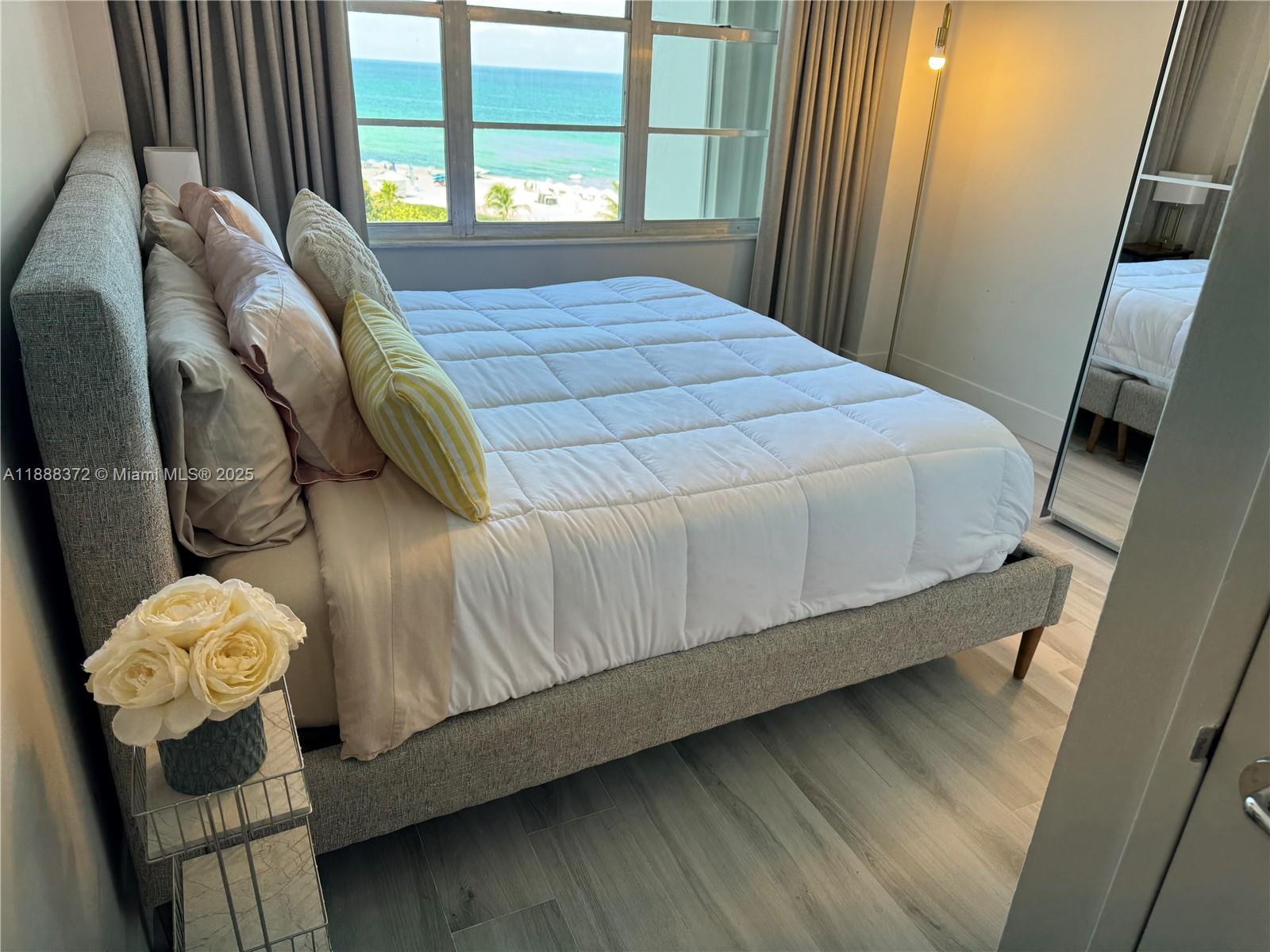 Fully furnished 2-bedroom, 2-bath residence with breathtaking direct ocean views. Elegant furnishings with a refined touch create a sophisticated retreat where you can relax while gazing at the endless blue horizon. The building offers an array of amenities, including a convenience store, state-of-the-art fitness center, hair salon, poolside tiki bar with food service, an outdoor hot tub/jacuzzi, and direct access to a wide sandy beach with complimentary lounge chairs and umbrellas. Stroll along the oceanfront boardwalk that seamlessly connects North Beach, Mid-Beach, and South Beach. The building has also recently undergone stunning renovations, with refreshed hallways and a newly redesigned grand lobby, elevating the luxury living experience.