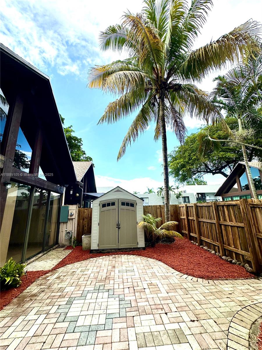 One of a kind townhouse / villa vaulted ceilings, composed of 3 bedrooms 2 bathrooms, laundry room, walk in closet, enclosed back yard with storage shed, 2 parking spaces assigned in front of the villa, with plenty of guest parkings. Beautiful size community pool and tennis court . Close to Mall, restaurants and other commerces.