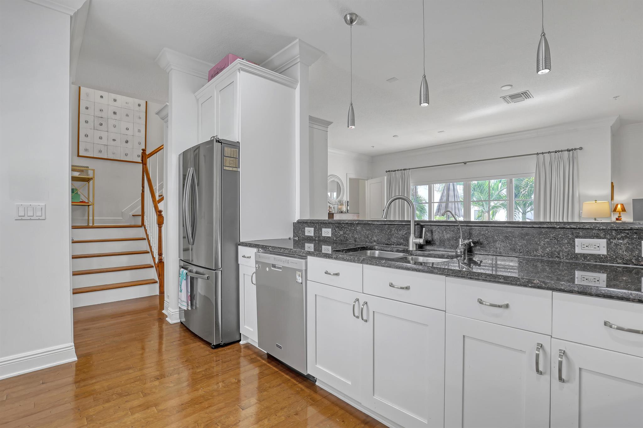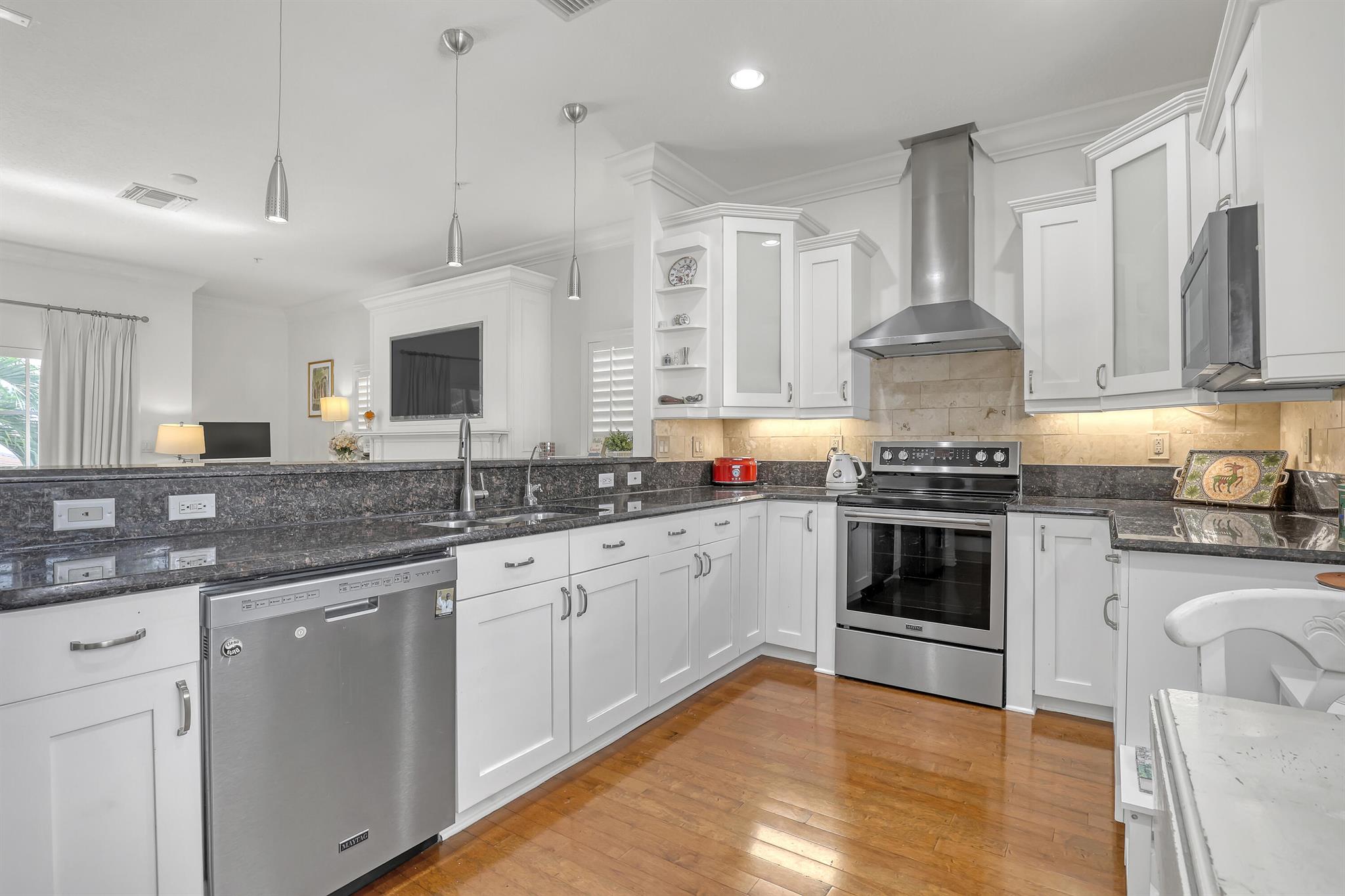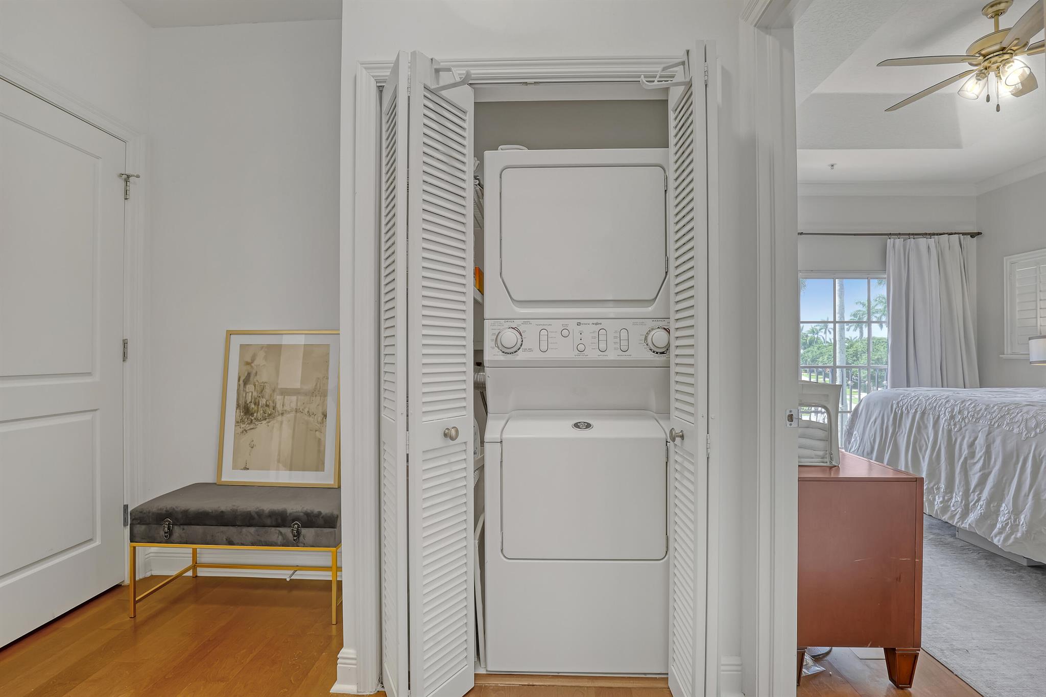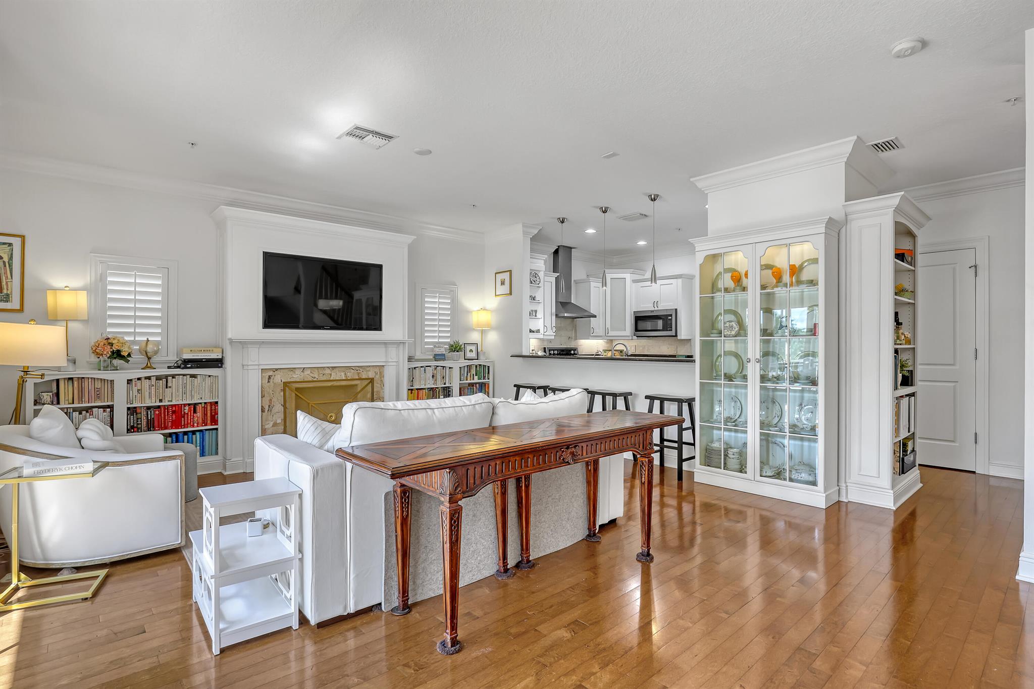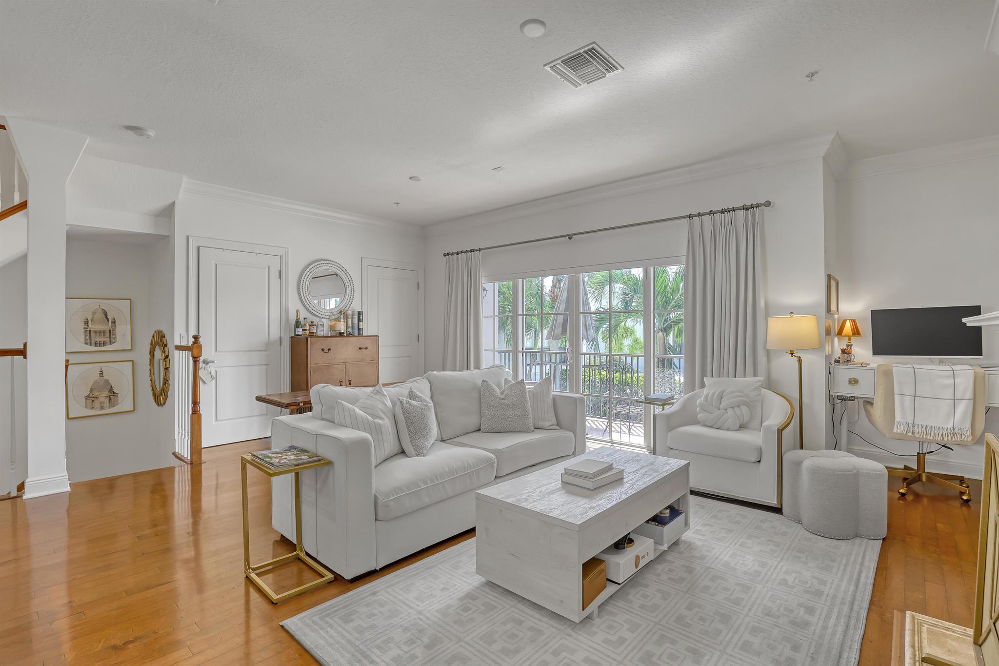 You will fall in love with this charming and private Mediterranean community consisting of only 12 three-story townhomes, all located behind the manned gates of the Lands of the Presidents. This immaculate residence offers a thoughtful floor plan: the first level includes a garage and an ensuite third bedroom, ideal for guests or a private office. The second floor features beautiful hardwood flooring, a cozy fireplace, open kitchen with stainless steel appliances, half bath, and a balcony where you can enjoy morning coffee or evening sunsets. The third floor offers a second ensuite bedroom along with the primary suite, complete with a walk-in closet, soaking tub, and separate shower.