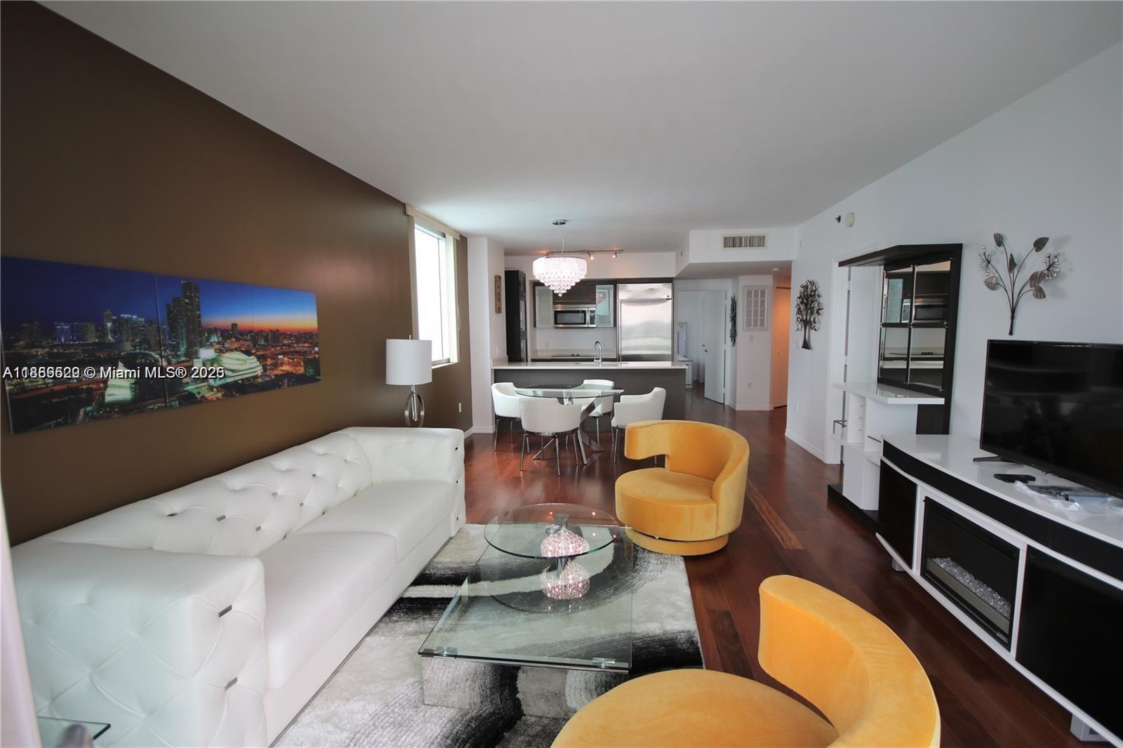 Fully furnished two-bedroom designer residence at 500 Brickell. Spacious split floorplan with city and partial water views from the balcony. Excellent location walking 1 block to Brickell City Center and 3 blocks to Mary Brickell Village. Excellent amenities include fitness center, central pool and rooftop.