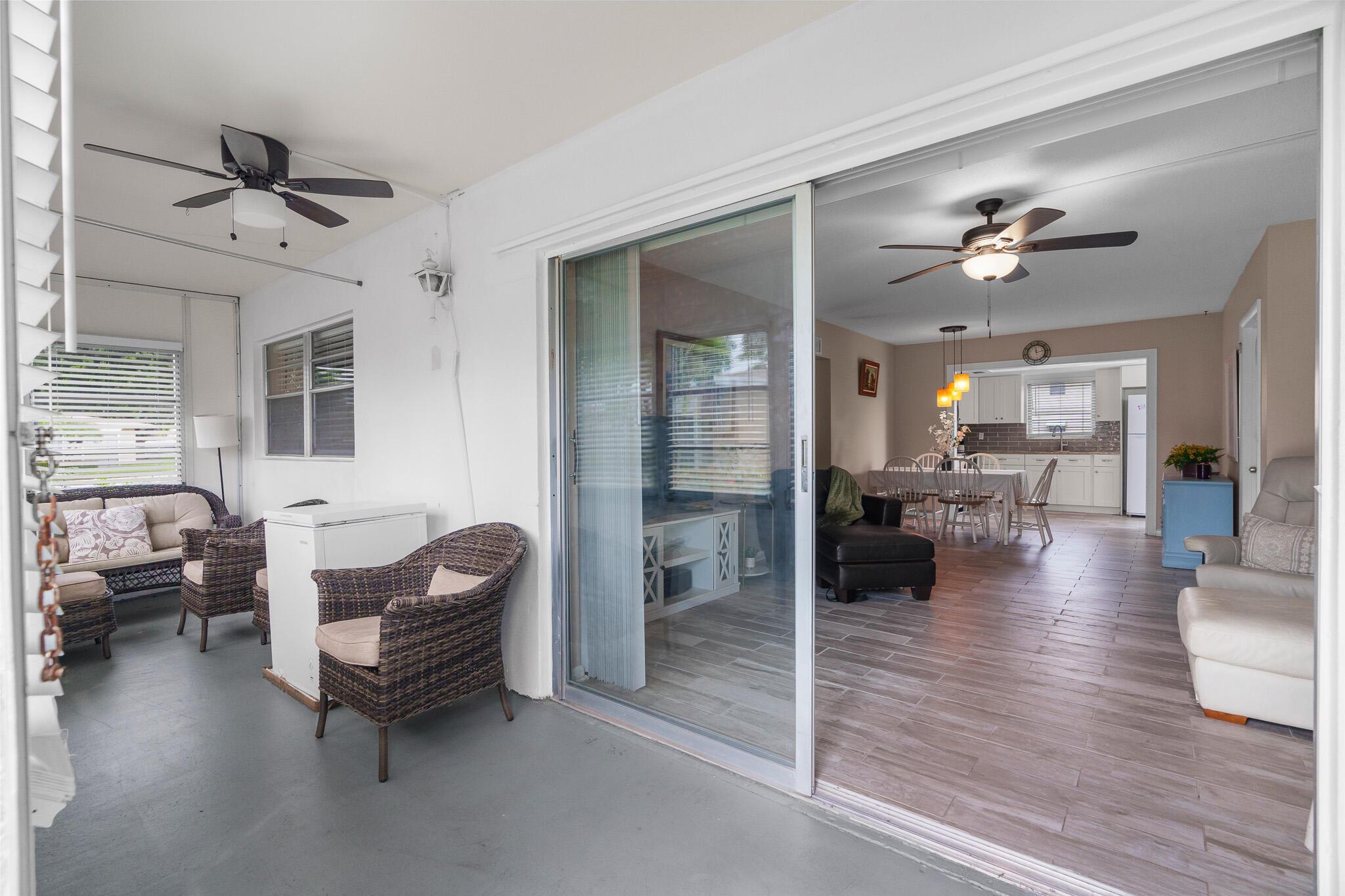Come enjoy this spacious 2-bedroom, 1.5-bath home in a peaceful 55+ community where neighbors look out for one another and life moves at a relaxed pace. Unwind on your screened patio overlooking green space, a perfect spot for morning coffee, fresh air, or catching up with a friend. The community offers a pool, library, and sauna, giving you plenty of ways to stay active or simply relax your way. In addition, to entertainment space to rent for parties. Located just 10 minutes from the beach and close to shopping, dining, and the mall, you'll have everything you need within easy reach -- whether you're here for the season or all year long. Enjoy the comfort, connection, and sunshine that make South Florida living so special!