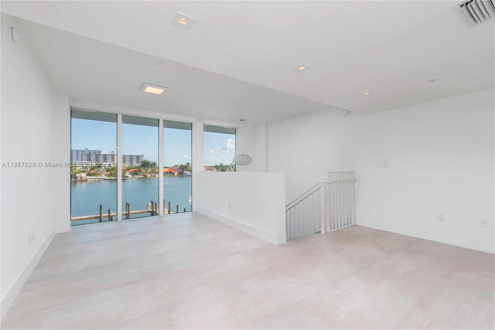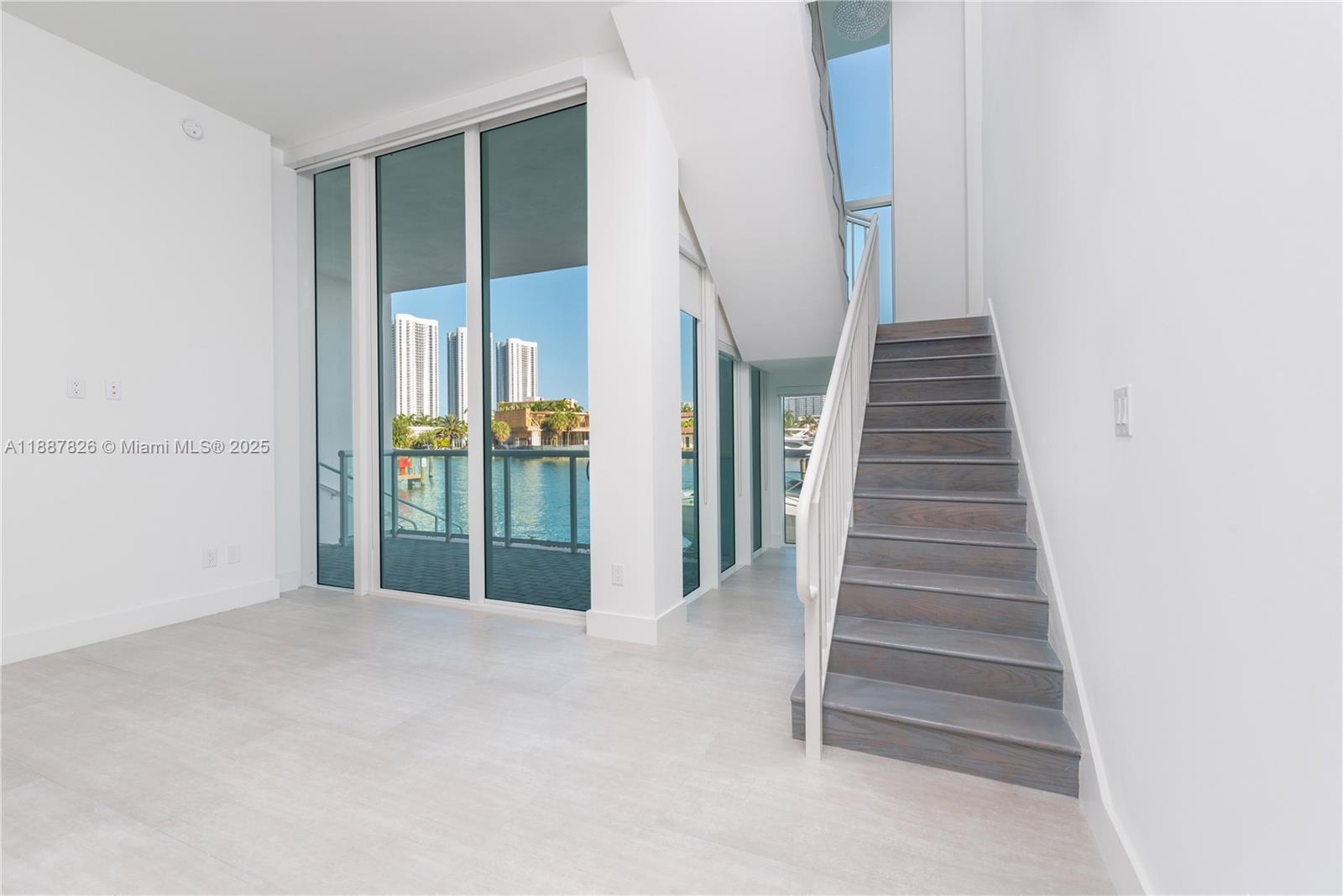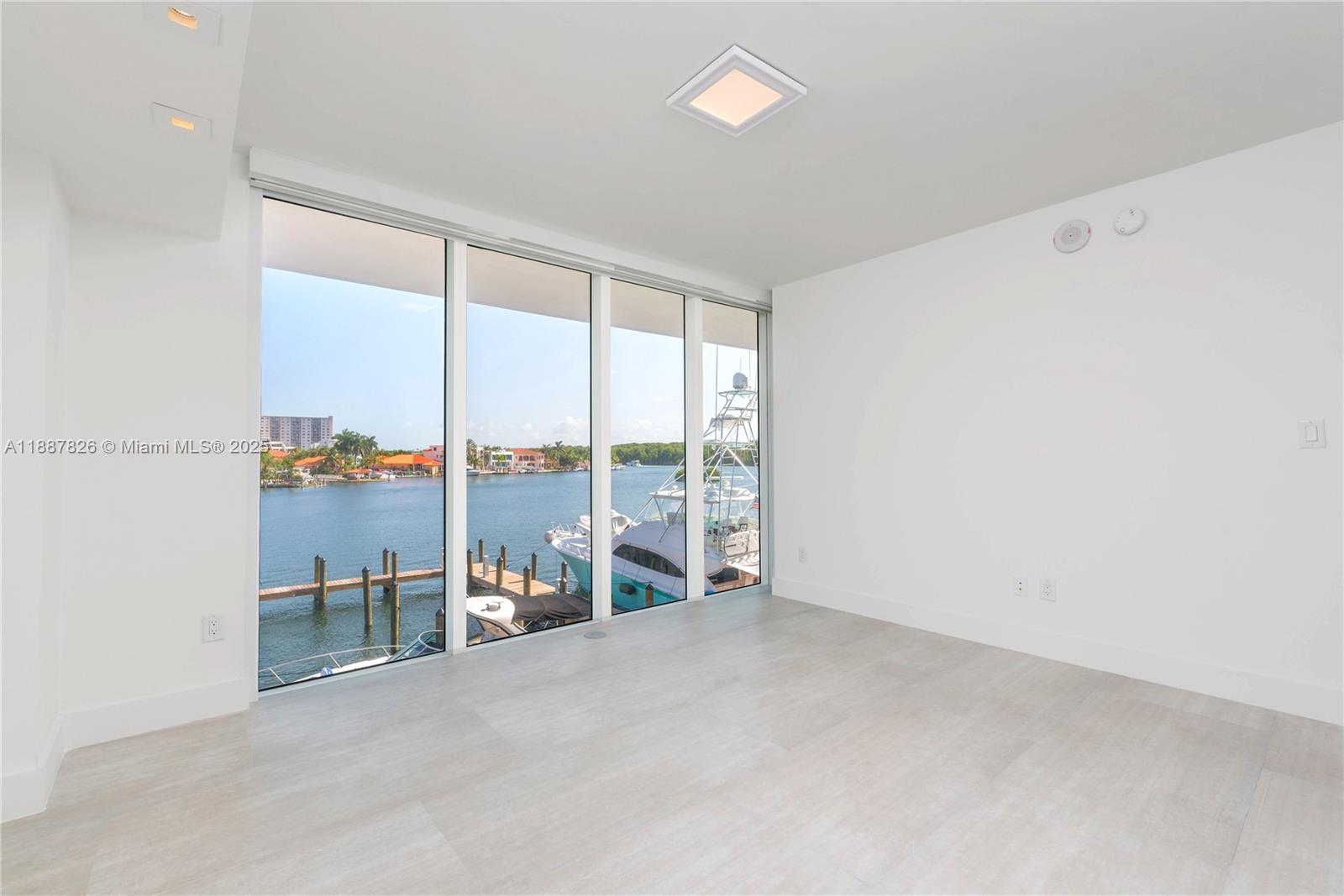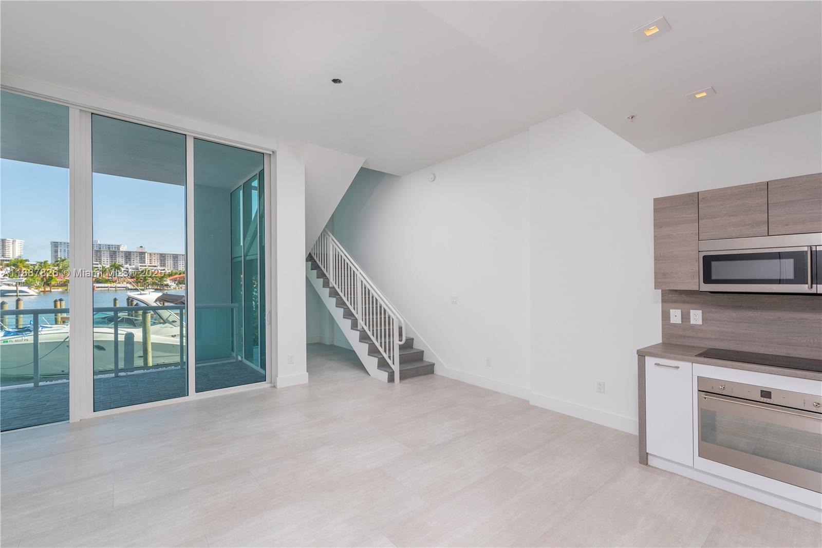 Rare 2-story corner townhouse at 400 Sunny Isles with soaring double-height ceilings and stunning direct bay views. This spacious and highly upgraded residence offers 2 bedrooms, 3 full bathrooms, plus a den that can easily be converted into a third bedroom or office. Modern finishes throughout include motorized shades, custom built closets, and elegant tile flooring. The bright open layout features floor-to-ceiling windows and a seamless connection to a private balcony with direct marina access, perfect for boaters. Two assigned parking spaces are included. Enjoy resort-style amenities such as a full-service marina, pool deck with cabanas, state-of-the-art fitness center, spa, tennis courts, and 24-hour concierge and security. Available December 1.