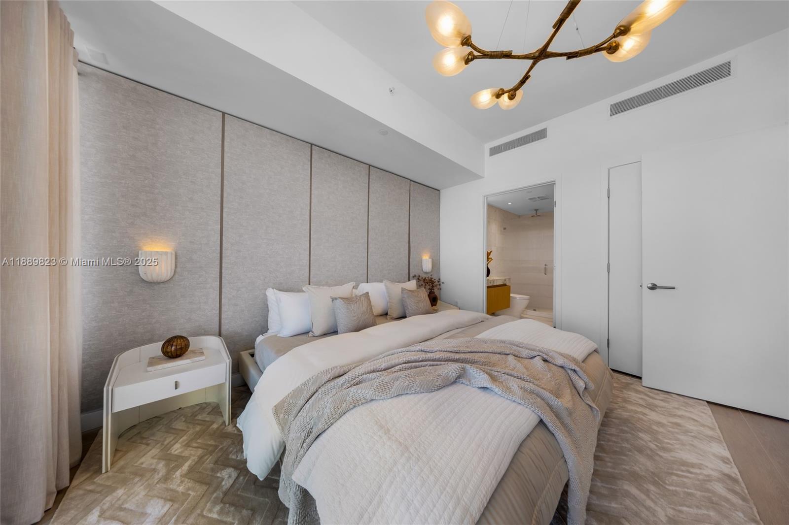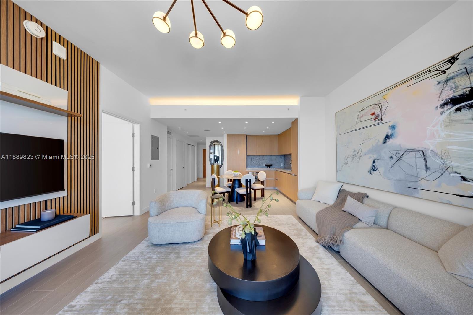 This sophisticated 1-bedroom, 1.5-bath residence at Five Park combines modern elegance with comfort and practicality. From the expansive terrace, take in panoramic views of the Atlantic Ocean and lively South Beach. Soaring 10-foot ceilings, floor-to-ceiling windows, and an open layout create an airy, light-filled ambiance. The chef’s kitchen is appointed with Gaggenau appliances, custom white oak cabinetry, and quartzite countertops. The primary bath showcases marble flooring, walls, and vanity. Five Park—Miami Beach’s newest luxury icon—offers residents an unparalleled lifestyle with premier amenities, including a bayfront full-service pool deck, cutting-edge fitness and wellness center, and an exclusive private beach club. Beatifully furnished