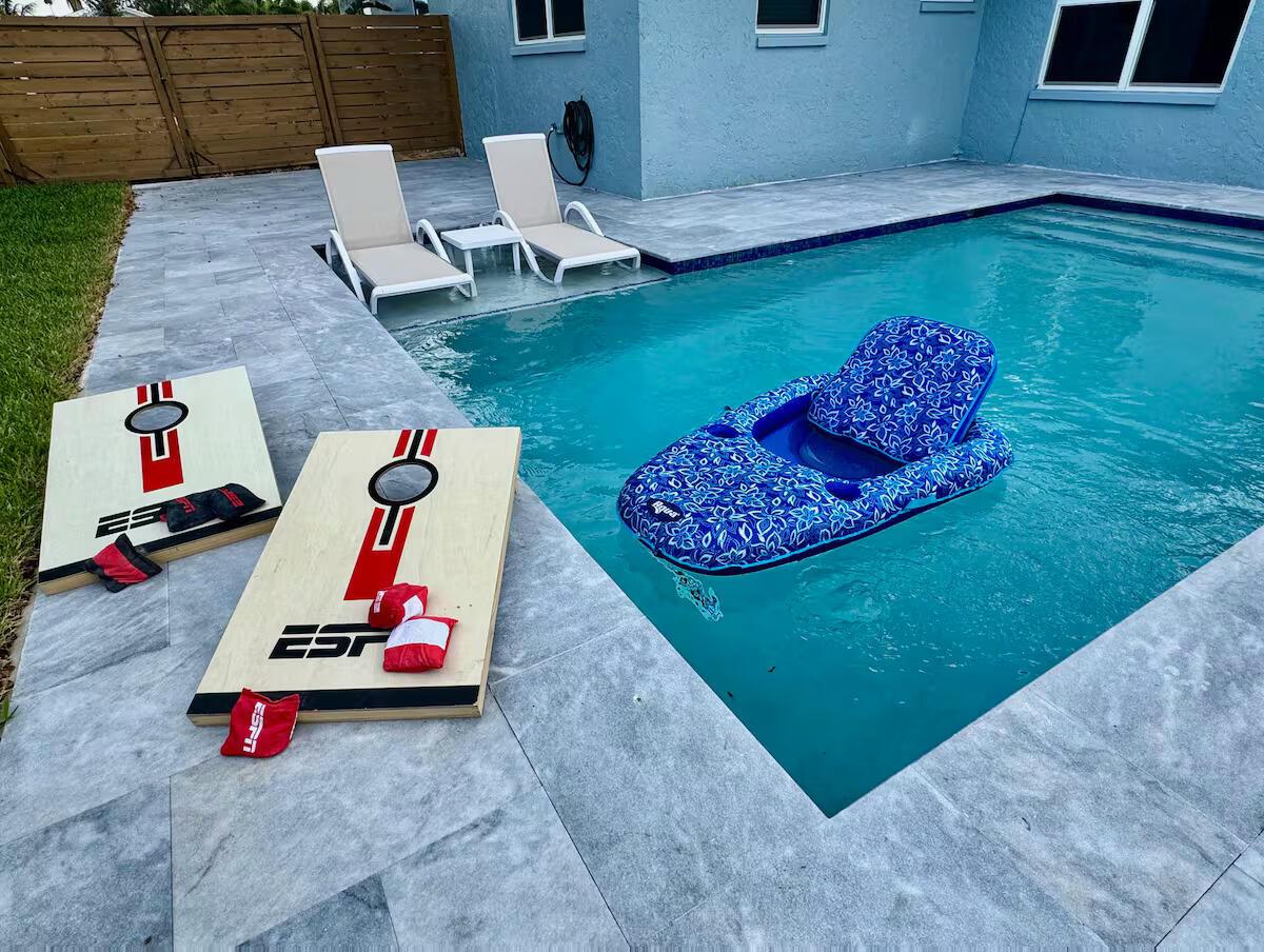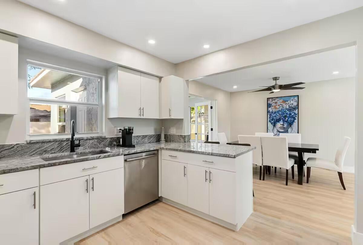 Stunning 4-Bed, 2-Bath Saltwater Pool Home w/ fenced yard in East Delray Beach - Available furnished/unfurnished for Short/Long-Term Rental. Welcome to this beautifully renovated single-family home offering comfort, style, & a true South Florida lifestyle. This spacious 4/2 property is in perfect condition & designed w/ both relaxation & entertainment in mind. Internet up to 300 mps, pool, lawn, & pest control are included for added convenience. Interior Features: Fully renovated w/ newer flooring, countertops, kitchen cabinetry, & appliances.Master suite with king-sized bed, walk-in closet, and private bath. Washer/Dryer inside. Additional bedrooms: one queen, one full, & one full with trundle. Bright open living and dining areas, plus a sunny Florida room with a private work space.
