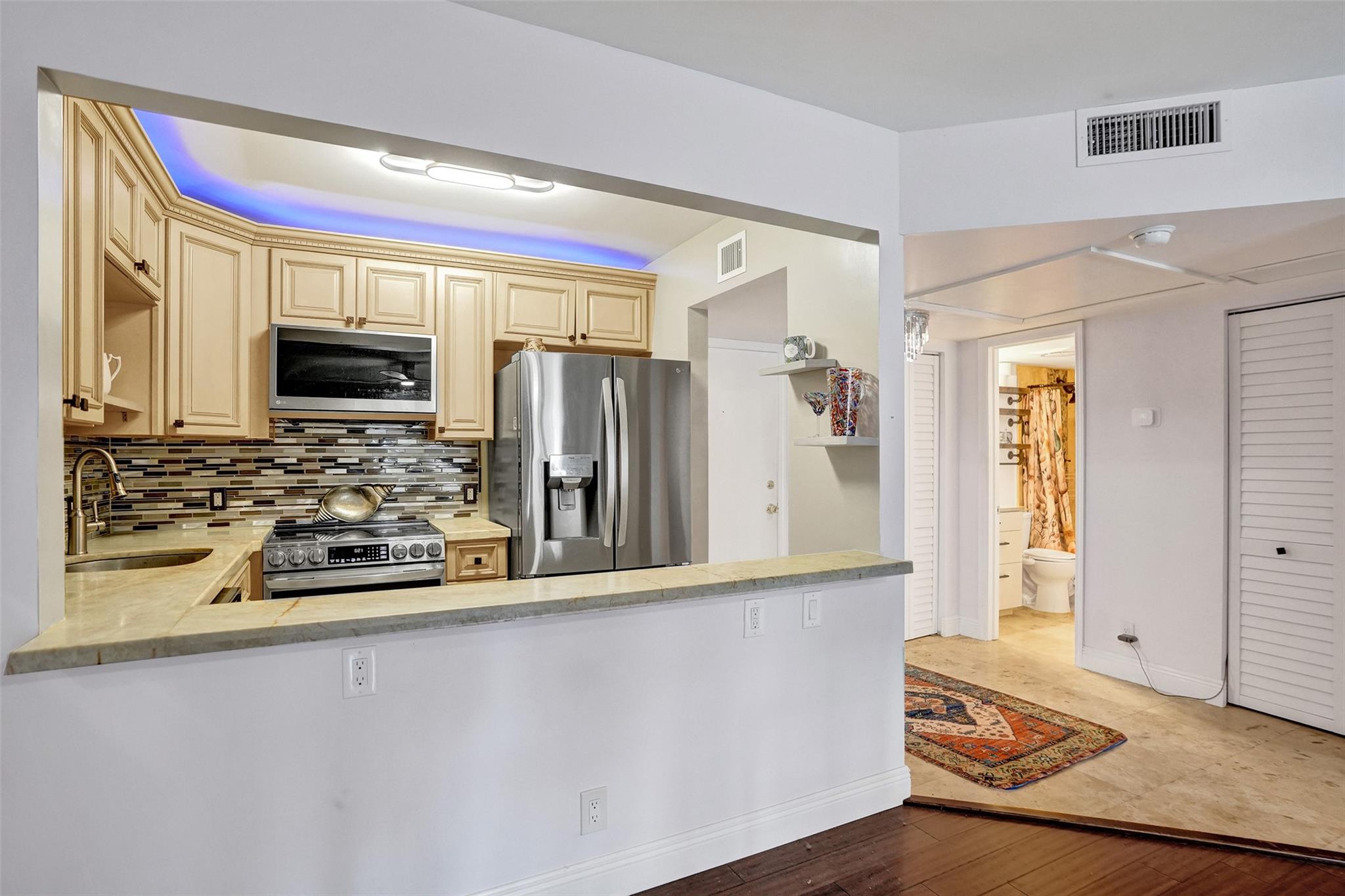 Discover this charming and upgraded 1-bed, 1-bath in the heart of South Florida's most up-and-coming city, Pompano Beach! This conveniently located 1st-floor unit offers a private entrance and includes a renovated kitchen featuring high-end stainless steel LG appliances, including a Miele dishwasher. The layout includes a large living room and primary bedroom with a generously sized walk-in closet. This condo also features an updated bathroom, impact windows, and beautiful floors throughout. The community offers access to a pool, clubhouse, BBQ area, activity paths, and more! Additional highlights include proximity to the beach and waterfront restaurants. Pompano Beach has a multitude of high-end investments in place, making this a great investment opportunity! *Furniture can be removed*
