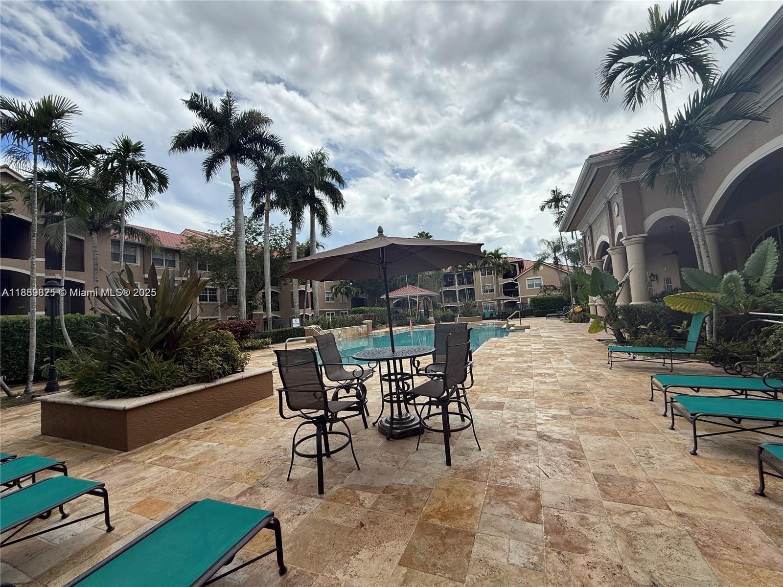 Enjoy relaxing water views of the canal from the spacious patio of this first floor 3-bed 2-bath condo in the gated community of The Marquesa, Pembroke Pines. This generously sized unit features an open kitchen with stainless steel appliances and granite countertops, in-unit washer and dryer. 2 parking spaces: one assigned parking, plus a detached deeded 1-car garage for additional parking and storage. Per association: No pets - only 1 emotional support/service animal. 700+ credit score for main applicant. Great amenities include a swimming pool, fitness center, clubhouse, movie theater, playground, picnic area and more. Centrally located near Pembroke Lakes Mall, The Shops at Pembroke Gardens, hospitals, highways, parks, and top-rated schools. Association approval 2 weeks.