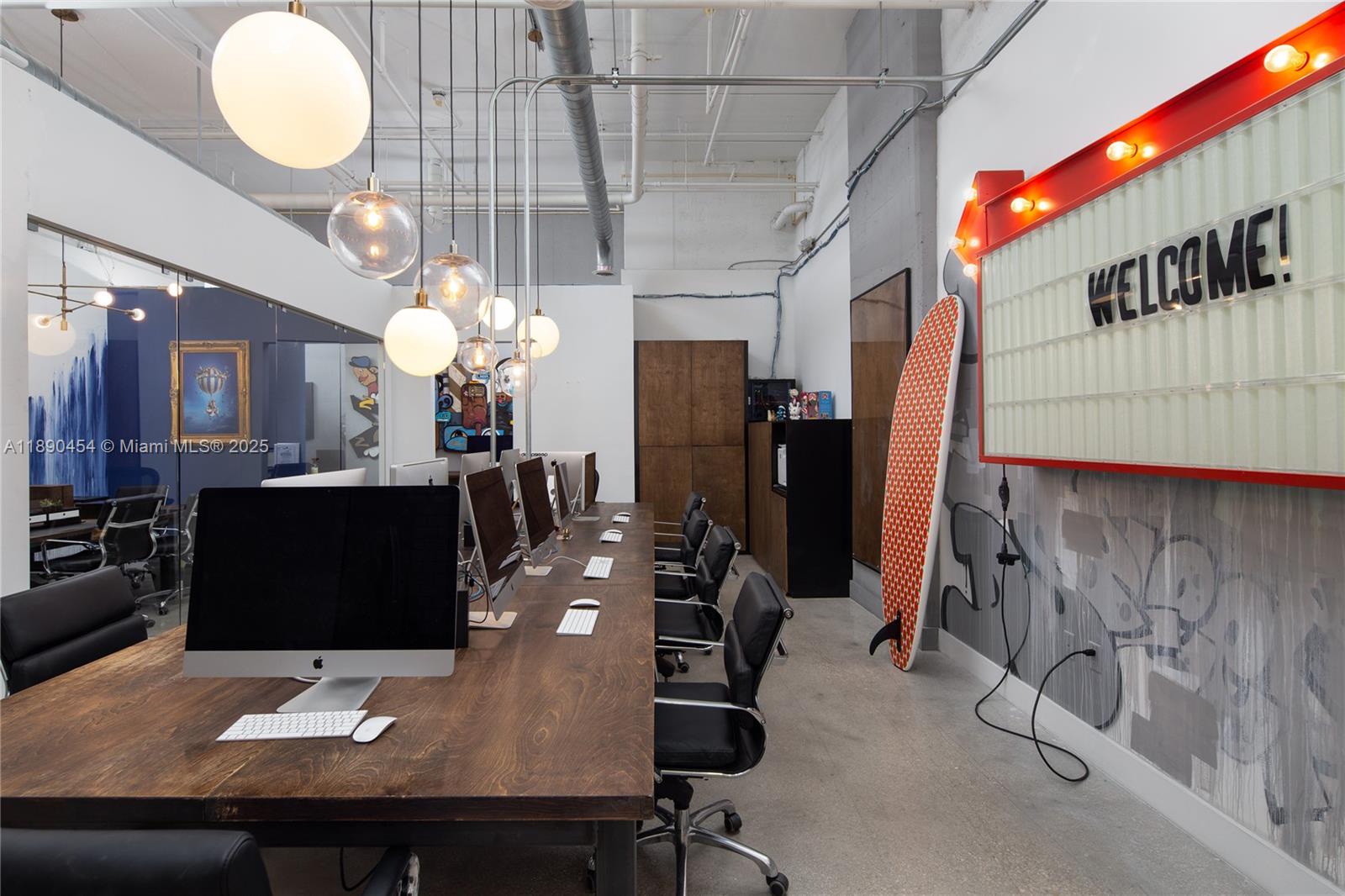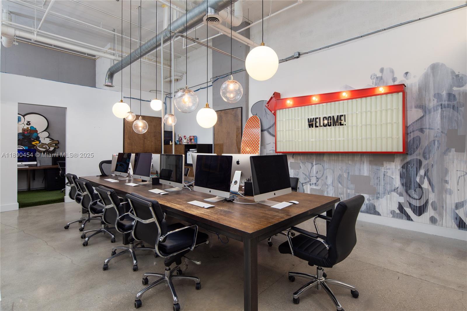 PH4 feature 1,987 RSF of versatile office space designed for a modern tenant. The suite features two entrances, a welcoming reception with an adjacent conference room, a large open area ideal for workstations or collaboration, two private offices, and a break room complete with running water for added convenience. Although the space has no windows, its soaring double-height ceilings fill the interior with abundant light, creating an airy and inspiring atmosphere that feels open and inviting. The existing glass partitions can remain for a semi-open layout or be easily removed to create a completely open plan tailored to your needs. For tenants seeking additional space, PH3 can also be combined with SPH3—an adjoining creative suite offering 2,596 RSF—available at $25 per RSF.