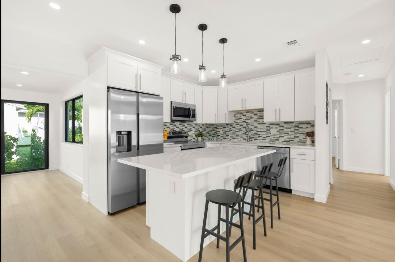 This gorgeous and newly renovated 4/2 single family home is fully furnished and is available now for annual rental for $5500/month or seasonal rental, 6 month minimum, for $7500/month. Prime location just 1.5 miles from the famous Atlantic Avenue. New roof, full hurricane impact windows, new floors, renovated kitchen and bathrooms! Home also has new electrical, appliances, driveway, and landscaping. Bike to coffee shops, galleries, brunch, and the beach! There is also a yoga studio in walkable distance! Don't miss out on this amazing rental. Pets allowed based on breed and size. No HOA!