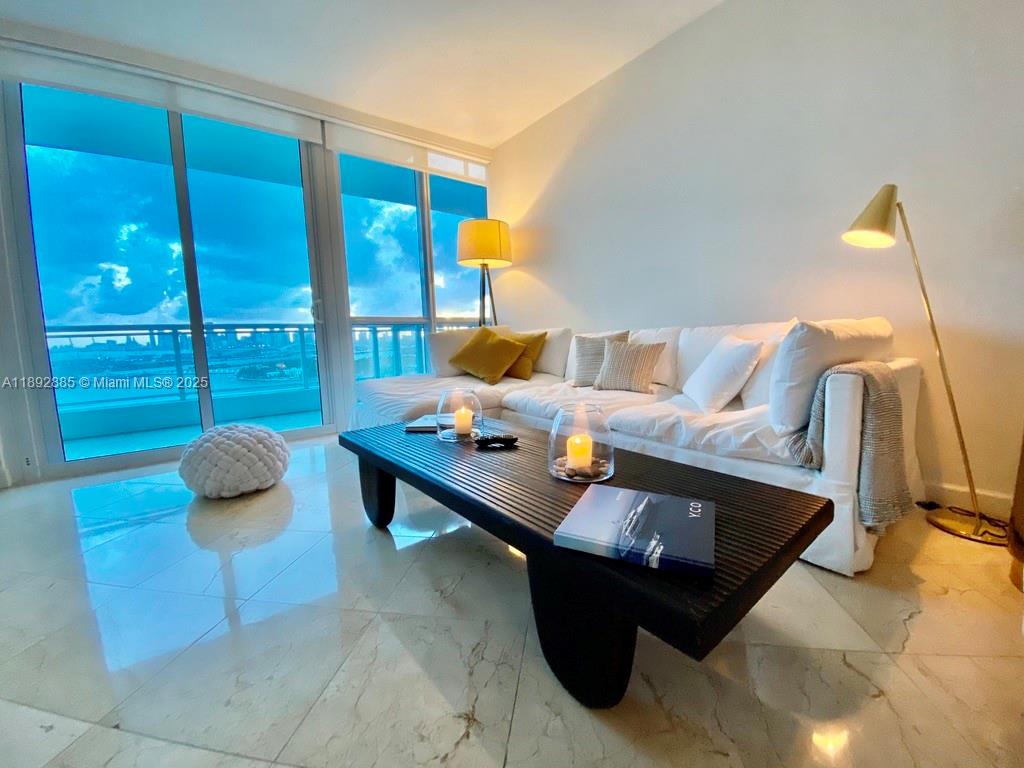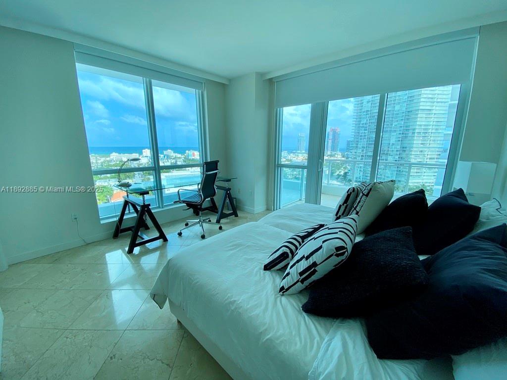 Waterfront Building Wraparound Balcony Incredible Views Corner Residence Fully Furnished Seasonal Beautiful furnished apartment in the Bentley Bay, one of South Beach's iconic waterfront buildings, in the heart of South Beach. Expansive large wrap around balcony, offering breathtaking 20th floor views of downtown, Star Island and Miami Beach. Marble floor, floor-to-ceiling impact windows, open kitchen with Italian cabinetry, marble countertop and stainless steel appliances. 2 bedrooms, large bathrooms with bathtub and shower. Only 4 units per floor. Valet parking, pool, fitness center, spa, security, and much more. Apartment is fully FURNISHED and available for seasonal rent, available immediately. Don't miss this opportunity - call today for a showing