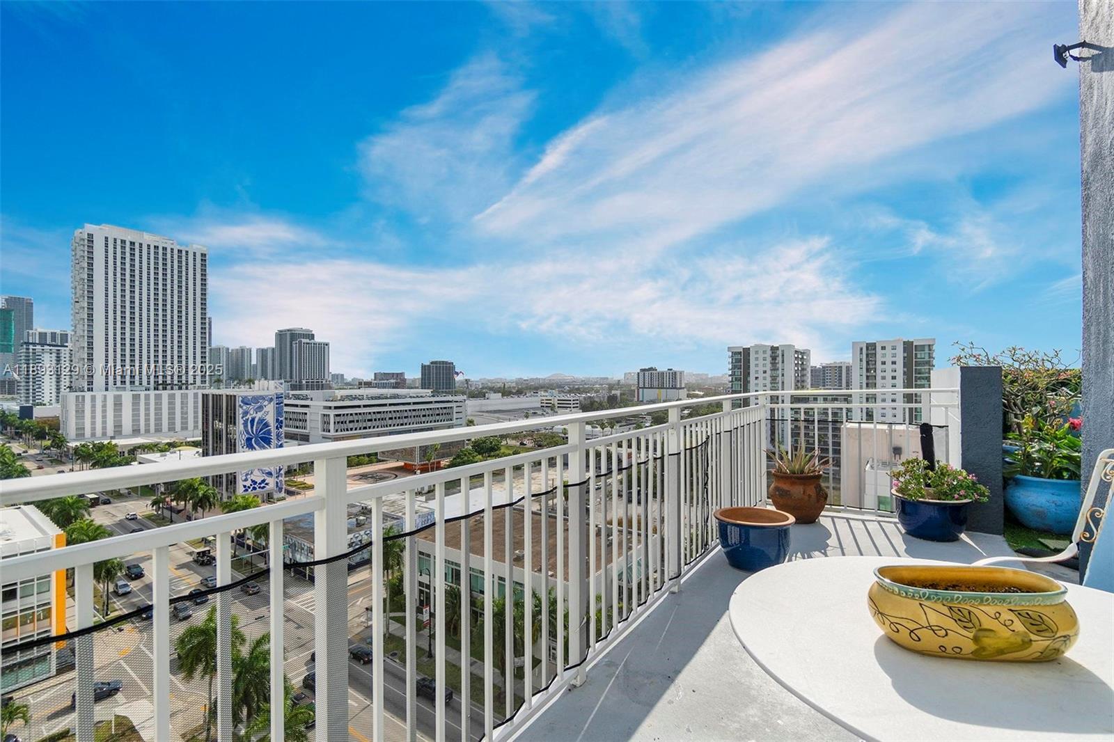 Welcome to this beautifully 985 sqft 1 bedroom penthouse corner unit in a tranquil 12-floor mid-rise building, with your very own 400 sqft terrace and two additional balconies. Large windows showcase breathtaking downtown views, filling the space with natural light and creating a serene atmosphere. The open-concept design seamlessly connects the living and dining areas, ideal for both relaxation and entertaining. New waterless tank heater added and new AC system. With limited inventory in the neighborhood, this unit is a rare find for those seeking a personal sanctuary. Embrace a lifestyle of luxury and peace in this remarkable home your perfect retreat awaits