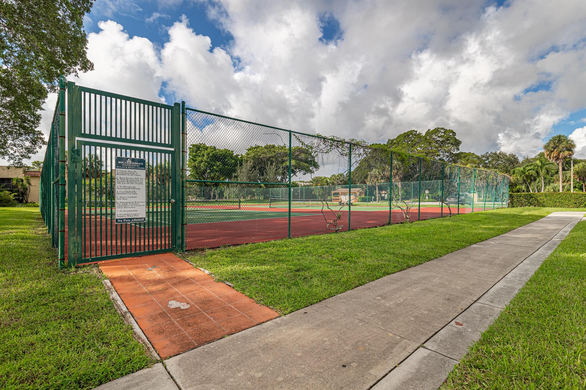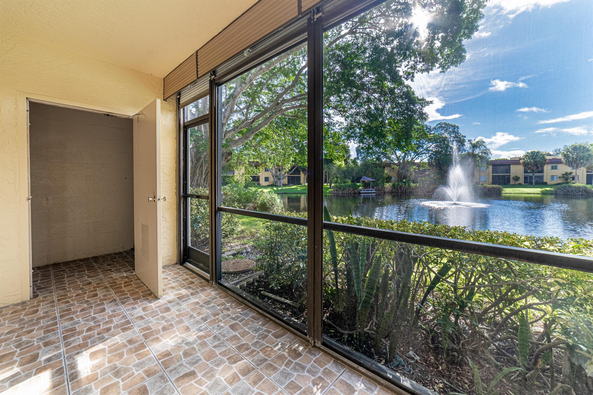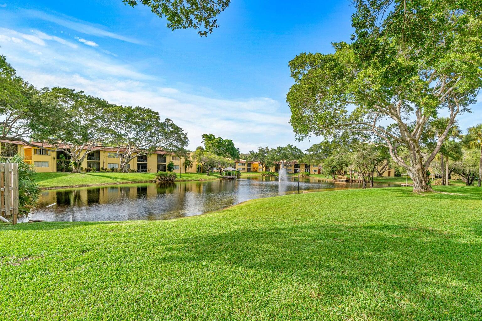 Renovated 2/2 Ground-Floor ALL-AGES condo with a GORGEOUS lake view located in the boutique-style community of Boca Terrace in Boca Raton. The moment you walk into the property, your eyes will see the lake with amazing fountain! Enjoy this wonderful view from the Screened Patio & Primary Bedroom. Features include Washer & Dryer inside, Ceramic Tile Flooring throughout, Tub and Stall Shower, & Hurricane Shutters. The lush landscaping with mature trees provide for peaceful living - enjoy as you walk along the trails. A-Rated Schools! Amenities: Clubhouse with Kitchen, Two Pools, Hot Tub, BBQ, Billiards, Library, Shuffleboard, & Tennis Courts. Located across from Sugar Sand Park. Short distance to Town Center Mall, Mizner Park, Lynn University, & Florida Atlantic University.