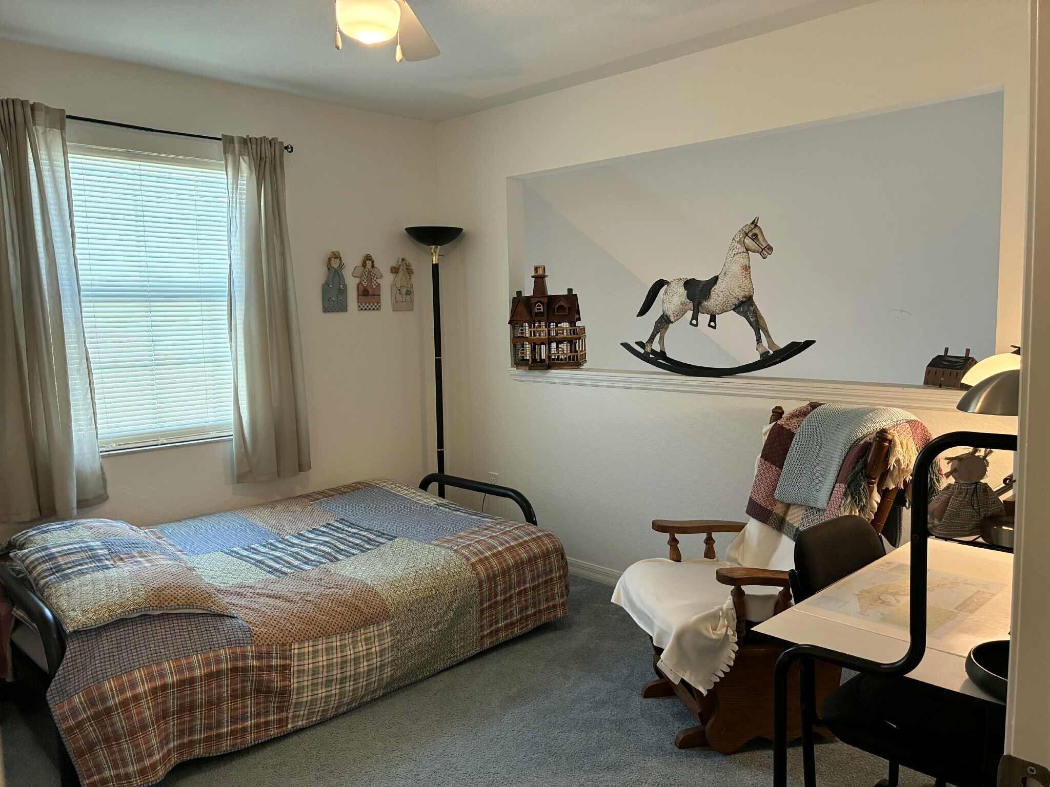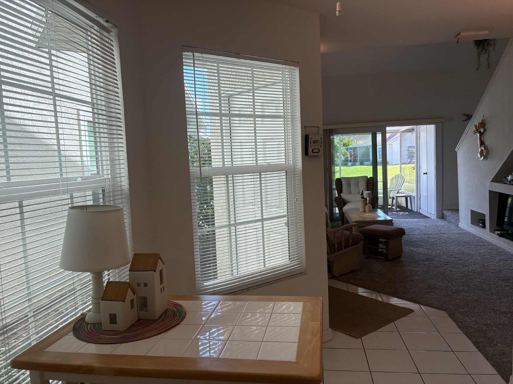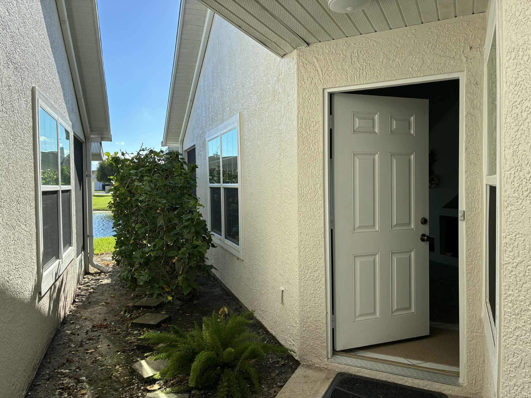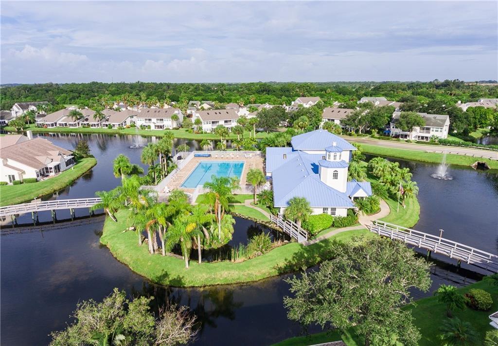 Seasonal gem! Nicely furnished, lakeside condo w/garage in attractive, sprawling community! Huge heated pool, clubhouse, pickleball/tennis courts & fitness center! Convenient to I-95, shopping, restaurants & golf. Just 8 miles to beach! Downstairs bedroom & full bath, plus large bedroom, den & full bath upstairs. Pleasant ,eat-in kitchen! Screened, lakeside porch w/fountain views! Full-sized laundry. Must see! (3rd bedroom w/cutout overlooking living room has futon but inaccessible closet; is considered as den) Utilities included up to $125 elec + $50 water/sewer per month.