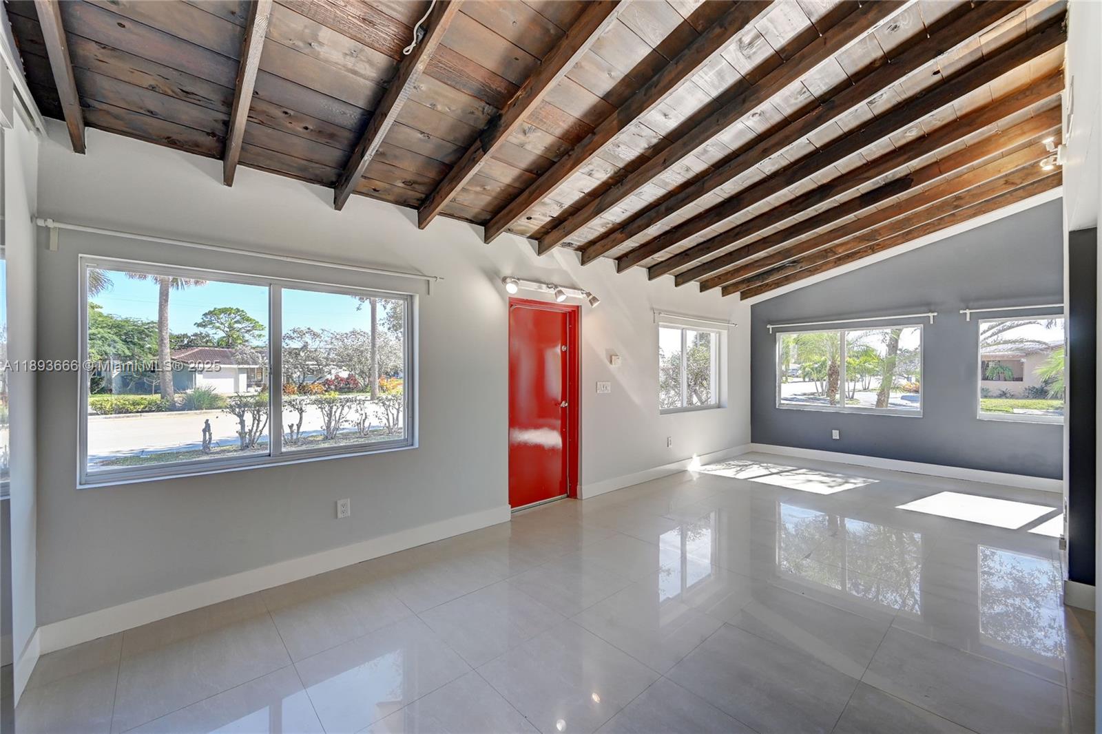 Welcome to this modern and contemporary complete conversion of a 3-bed 2 bath Florida home. Magnificent 16 feet cathedral ceilings with exposed wood make this property unique and charming. Extremely bright house with numerous enlarged impact glass windows produce an outdoor feeling to this exquisite home. Circular driveway with pavers and numerous fruit trees create a lovely shaded fenced-in backyard with room for a pool, perfect for pets or kids. Other great features include beautiful porcelain flooring, European style open kitchen. Green house with high efficiency tankless hot water heater, high efficiency AC and upgraded insulation. Super-fast internet available. Extremely close to Wilton Manors, minutes from Ft. Lauderdale beaches, downtown, airport, and many fine restaurants.