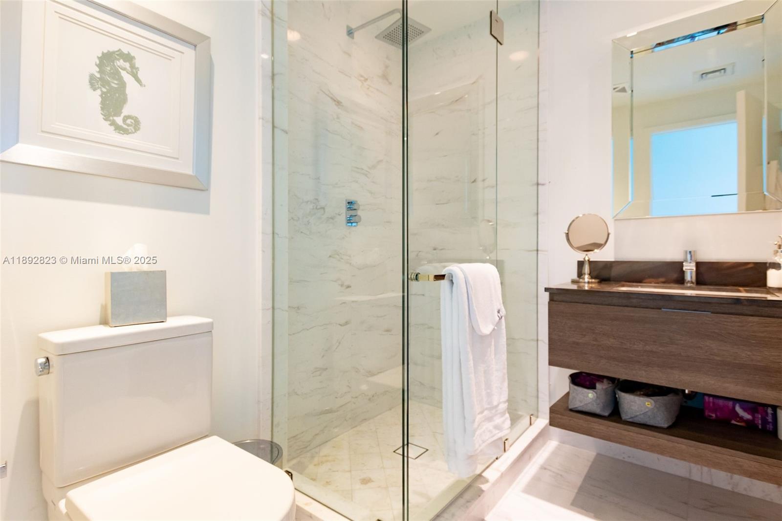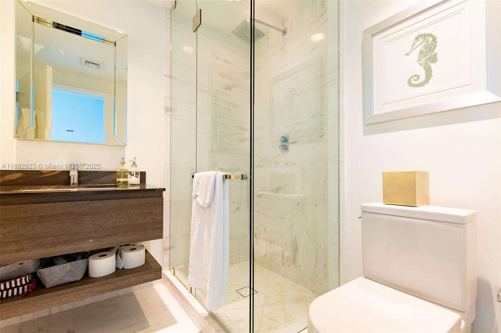 Stunning & unobstructed oceanfront & city views in this unique, tastefully decorated property at the exclusive Oceana in Key Biscayne. Unit features a spacious & practical layout 3B|4BA|Den|2,257 SF & private foyer/elevator entrance. All bedrooms have balcony access, on-suite bathrooms & walk-in closets. Marble floors throughout, high ceilings, electric shades & miscellaneous upgrades throughout. The kitchen features quartz counter tops, double oven, wine cooler & custom cabinetry. Additional rooms include a spacious den or office space & a maid's quarter/laundry room with a full bathroom inside & custom storage cabinetry. Exclusive resort-style amenities such as a beach restaurant with beach front service, sauna, pool, spa, a fully equipped gym & private tennis courts.