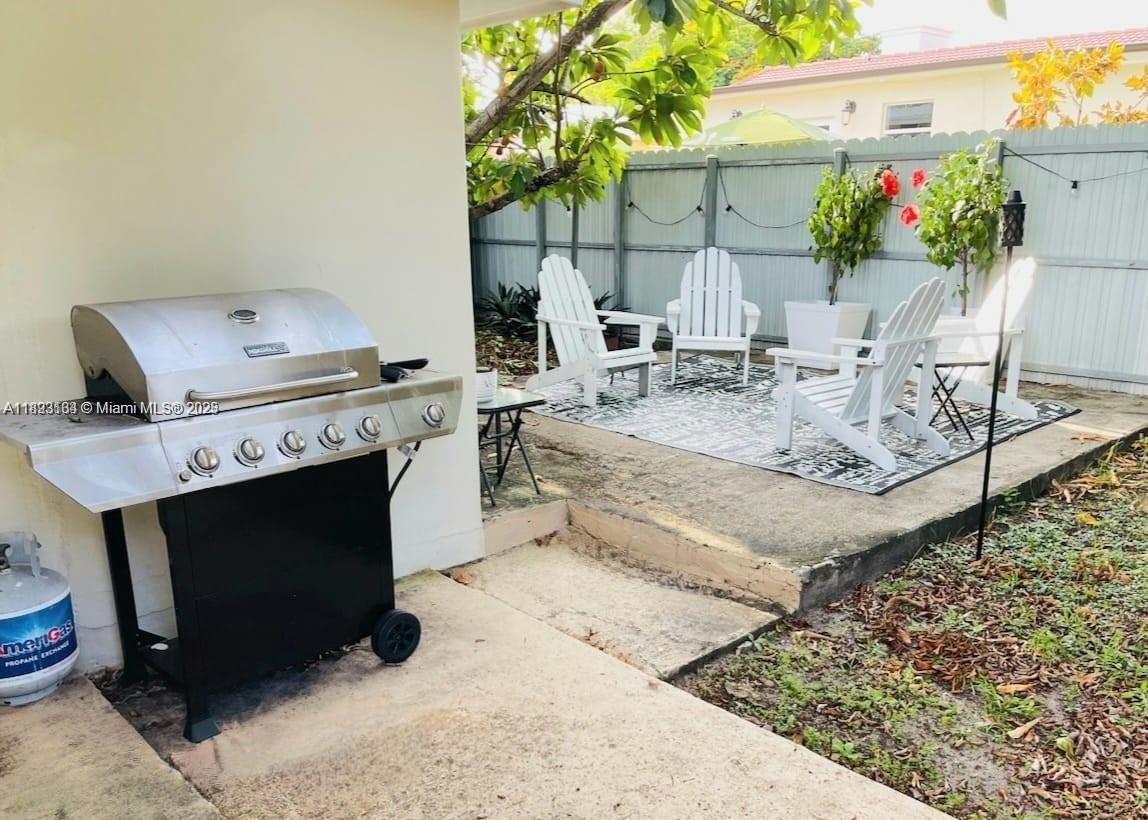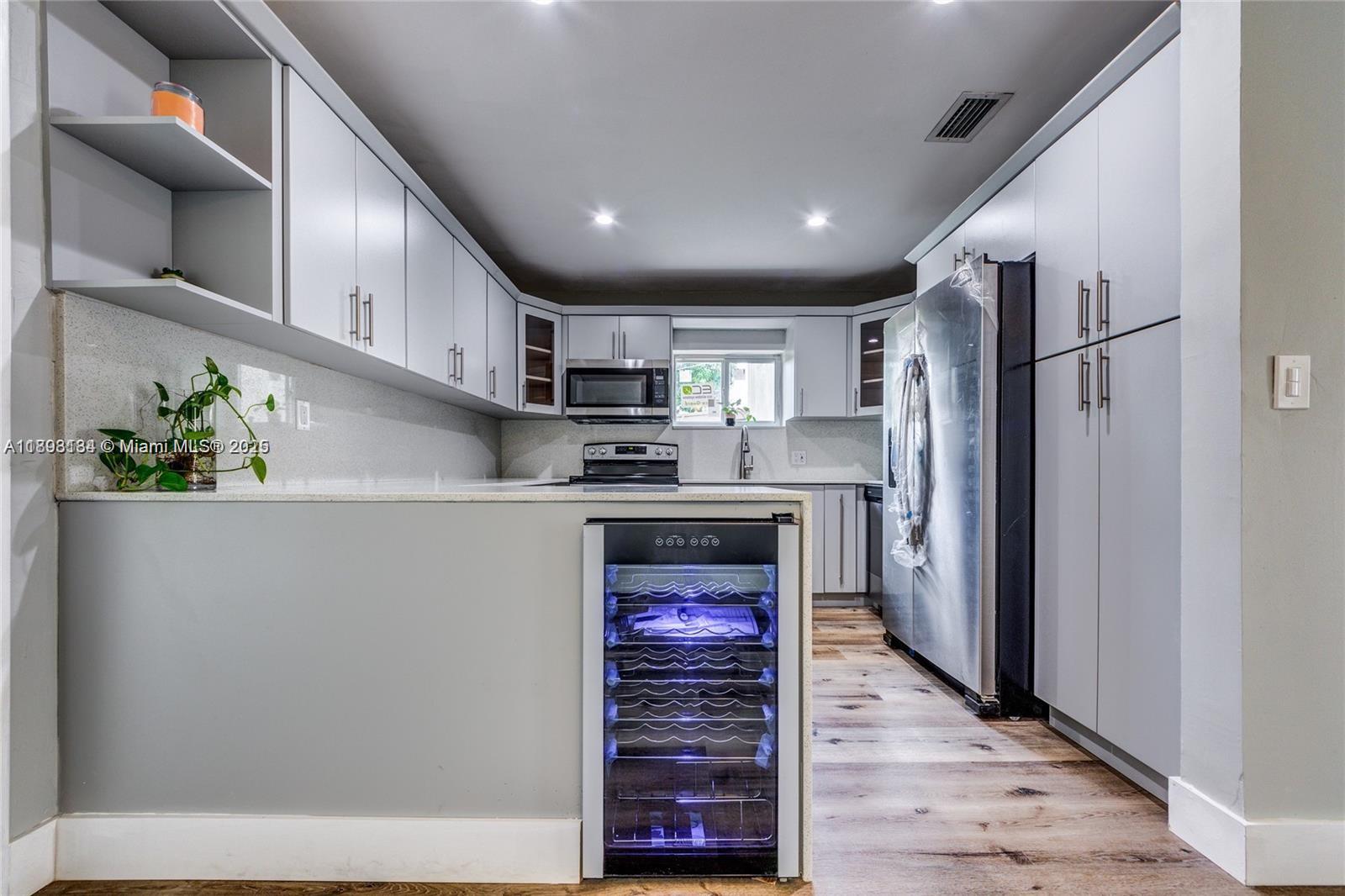 Upscale bright bungalow minutes from Gables, Grove, and Brickell. Features include open floorplan, wood floors, spacious rooms, glass-enclosed showers, wine refrigerator, electronic locks, LG washer and dryer, and Nest thermostat. Walk to shops, restaurants, parks, and public library. 3rd bedroom can also be sued as an attended living area, den, or office (with a separate entry door). Brand new GE refrigerator. Fully fenced small back yard (pets permitted) with patio, hammock, and Mamey tree, (bbq grill permitted). Water filtration system installed. All hurricane window and doors. Security system available. Ready for December 1st move in.