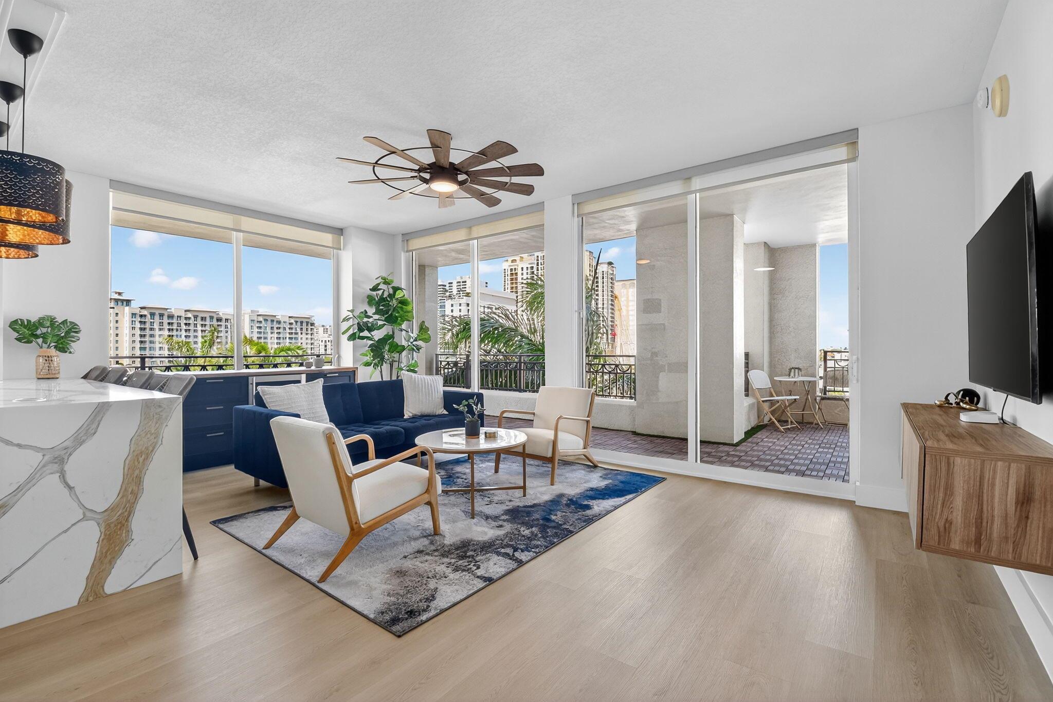 AVAILABLE 6/1/26 FOR A MIN OF 6 MONTHS! FULLY FURNISHED & TURNKEY! Recently renovated from top to bottom with designer finishes - this stunning 3-bedroom corner unit in CityPlace South Tower is the one you've been waiting for! With a brand-new chef's kitchen, custom built-ins, high-end appliances, and wide-plank luxury flooring throughout, no detail was overlooked. Natural light pours in through floor-to-ceiling impact windows, highlighting the sleek, modern design and open layout. Downtown West Palm Beach is in the midst of a major transformation, quickly becoming one of South Florida's most sought-after destinations for luxury living, investment, and innovation. With billions in new development underway, including Class A office towers, world-renowned restaurants like Eataly, Milos,