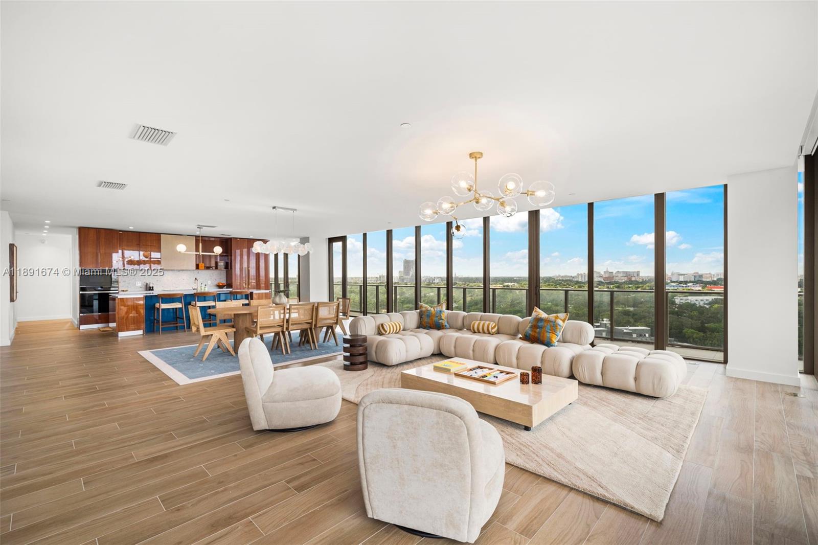 Experience this rare turnkey one-of-a-kind sky home, meticulously curated with designer finishes, bespoke furnishings, and exquisite décor. Every detail reflects sophistication from the sleek porcelain flooring to the custom Italkraft kitchen and fully built-out butler’s pantry—crafted for both elegance and functionality. Expansive walls of glass frame sweeping panoramic views, filling the home with natural light and highlighting the seamless flow between living, family, and dining areas. The thoughtfully designed layout offers generous proportions throughout, ensuring comfort without compromise. As the most expansive floor plan for lease, this residence stands alone as a 1-of-1 condo blending style, scale, & luxury that redefines elevated living at the new Mr. C Residences Tigertail.