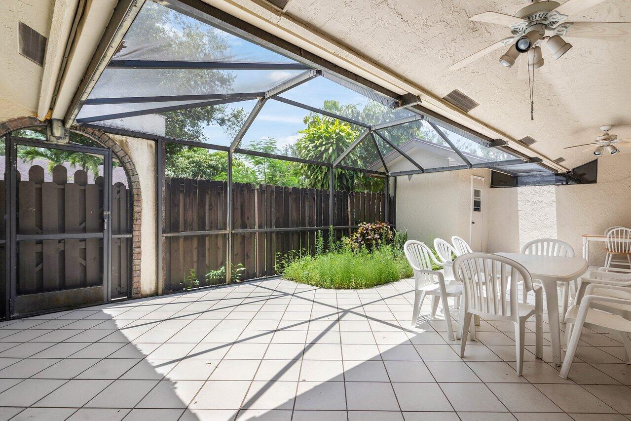 Beautiful 2-Bedroom Villa with Brand-New A/C and Private Patio!Welcome home to this bright and airy 2-bedroom, 2-bath villa now available for rent! This residence is filled with natural light, featuring sliding glass doors from each bedroom leading to a private, screened-in patio--perfect for relaxing or entertaining.The primary suite offers vaulted ceilings, a spacious walk-in closet, and a dual-sink ensuite bathroom. The home also includes a brand-new A/C system, in-unit washer and dryer, and a TV in the second bedroom that will remain for tenant use.Enjoy resort-style amenities including a community clubhouse, pool and spa, tennis courts, basketball courts, and a tot lot. Ideally located just minutes from the Florida Turnpike, major intersections, Boca Town Center Mall,
